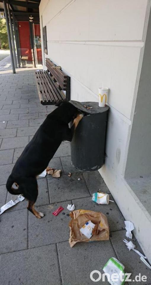 Morgens 9 Uhr am Großparkplatz: Zwischen Autos, Bussen und Spaziergängern war am Mittwoch ein Hund ohne Herrchen unterwegs. Er überquerte ständig die Straßen und suchte in den Mülleimern nach Fressen. Dabei verteilte er schwungvoll Tüten und Verpackungen am Boden. Das Tier hatte weder Halsband noch eine Marke.