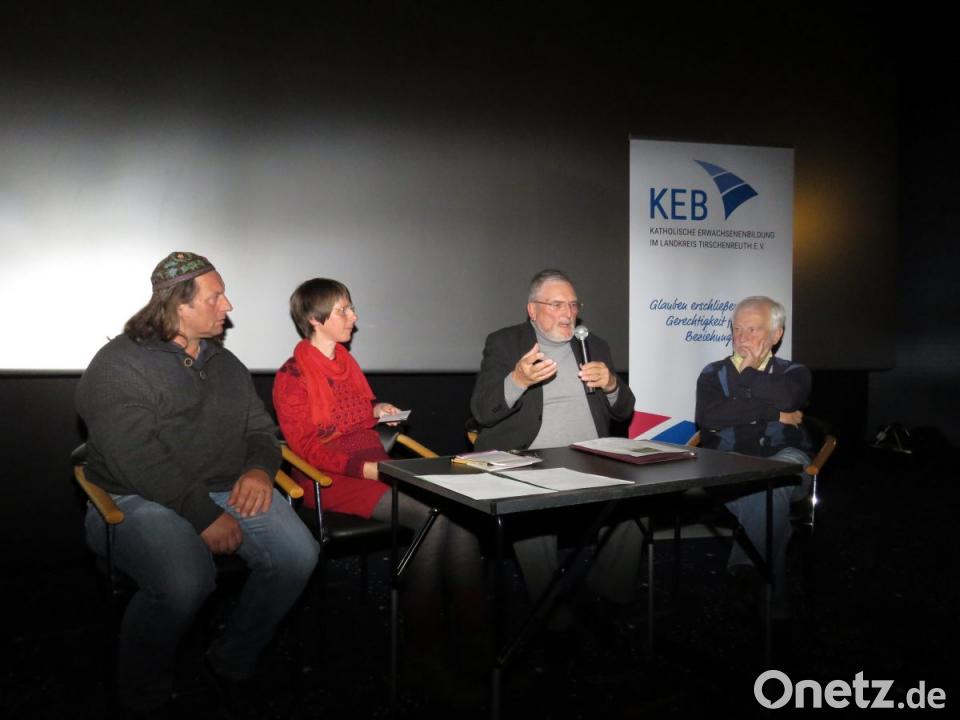 Und es gibt im Film auch eine Szene mit den Priestern, die im WAA-Hüttendorf vor über 30 Jahren Gottesdienste abgehalten haben. Susanne Götte, Öffentlichkeitsreferentin des evangelischen Dekanats Weiden, moderiert gut zwei Stunden später das Filmgespräch: "Warum haben Sie mitgemacht?", fragt sie in die Talkrunde. Pfarrer Schlagenhaufer, viele Jahre Pfarrer in Kohlberg, erinnert sich an die Anfänge des Umwelt- und Naturschutzes, als das Waldsterben begann. "Wir leben alle auf der gleichen Erde. Da musste man sich einmischen!" Schlagenhaufer wurde bei einer Demo verhaftet, der Bischof wollte ihn suspendieren. Seinem evangelischen Kollegen Rettig ging es ebenso.