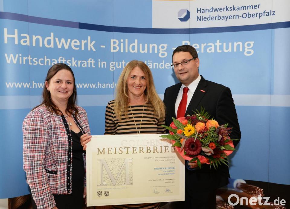 Aus dem Landkreis Tirschenreuth waren dies Elektroinstallateur Richard Bauer aus Immenreuth, Maurermeister Josef Böhm aus Neualbenreuth/Poxdorf, Friseurmeisterin Monika Burger aus Waldershof, Damenschneidermeisterin Franziska Härtl, aus Wiesau und Spenglermeister Helmut Kipferl aus Leonberg. Verhindert war Kraftfahrzeugmechaniker Konrad Schmucker aus Fuchsmühl Er erhält die Auszeichnung per Post zugeschickt.