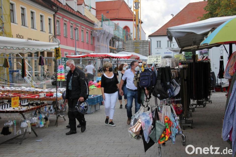 Ruhig ging es am Sonntag auf dem Tirschenreuther Herbstmarkt zu. Das Interesse am Markt war heuer überschaubar, was sowohl die Anzahl der Fieranten als auch die der Herbstmarkt-Besucher angeht. Viele Stellplätze auf dem am Maximilianplatz blieben frei. Obwohl das Wetter sich von seiner besten Seite zeigte, hielten wohl die Corona-Regeln einige Gäste vom Besuch des Herbstmarkts ab. Zur Sicherheit hatte die Stadt trotz der niedrigen Inzidenz eine Maskenpflicht auf dem Herbstmarkt vorgegeben. Zudem war durch eine Einbahnstraßen-Regelung die Laufrichtung für die Besucher vorgeschrieben. Einige Gäste nutzten den Herbstmarkt aber doch für einen gemütlichen Einkaufsbummel und schlenderten durch die Budenstadt. Angeboten wurden von über 30 Fieranten Haushaltsartikel, Kleidung, Liköre, Obst oder Gewürze, Süßigkeiten sowie Spielsachen und auch viele herbstliche Blumen und Pflanzen. Auch die Tirschenreuther Geschäfte hatten an diesem sonnigen Tag ihre Läden geöffnet. Bei dem spätsommerlichen Wetter saßen die Besucher auch gerne in den Außenbereichen der Cafés und Gasthäuser und genossen das ruhige Treiben. Den Tirschenreuther Herbstmarkt gibt es seit 2018, er findet immer am ersten Sonntag im September statt.