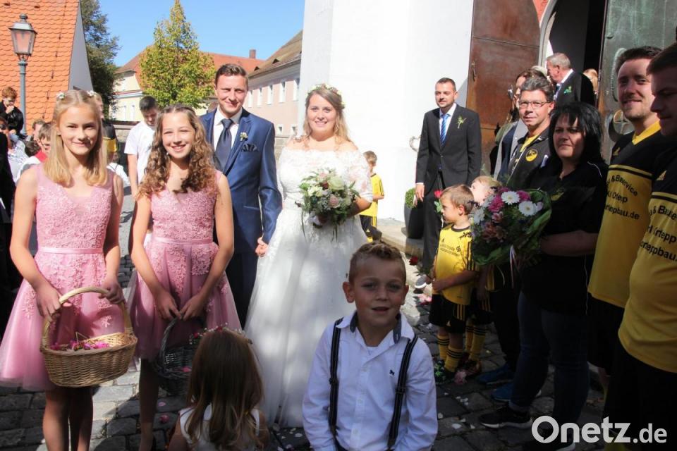 Kirchlich trauten sich am Samstag in der Tirschenreuther Stadtpfarrkirche die Mittelschul-Lehrerin Eva Wegmann aus Höll (Gemeinde Pullenreuth) und der Realschullehrer Florian Gleißner aus Tirschenreuth. Die Trauung nahm Stadtpfarrer Georg Flierl vor. Gesanglich wurde die Trauung von Julia Thoma, einer Schwester der Braut, und von Bernhard Müller aus Kondrau umrahmt. An der Orgel saß Jochen Kröll aus München. Nach der Trauung wurde das frisch vermählte Paar von den Fußballern des FC Tirschenreuth im Ehrenspalier erwartet.