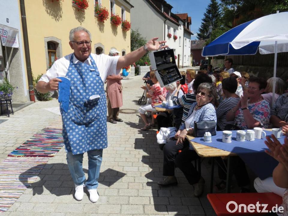 Die von Olga Luft vorher aufgestellten Biertischgarnituren reichten nicht aus, derart viele Gäste wollten beim Straßenfest der Kreis- und Stadträtin unbedingt dabei sein. Gut, es waren hauptsächlich Frauen anwesend. "Bin ich der einzige Mann? Dann gehe ich lieber wieder", kommentierte das dann auch bei seinem Eintreffen Herbert Konrad. Natürlich scherzte er nur, denn Konrad sollte wenig später als eines der Models noch eine wichtige Aufgabe beim Ringstraßenfest bekommen. Olga Luft begrüßte ihre "Damen" herzlich, bedankte sich für die vielen Glückwünsche zu ihrem 65. Geburtstag und erzählte, wie es zu dieser Modenschau hat kommen können. "Heute ist normalerweise unser Handarbeitstag", sagte sie. Jeden Mittwoch kommen einige Mitglieder des Frauenbundes bei ihr zusammen, um neue, schöne Dinge wie Mützen, Schals, Handschuhe, Tischdecken, Taschen, Schmuck und vieles mehr zu schaffen, die im FB-Laden oder auf Basaren für gute Zwecke verkauft werden.