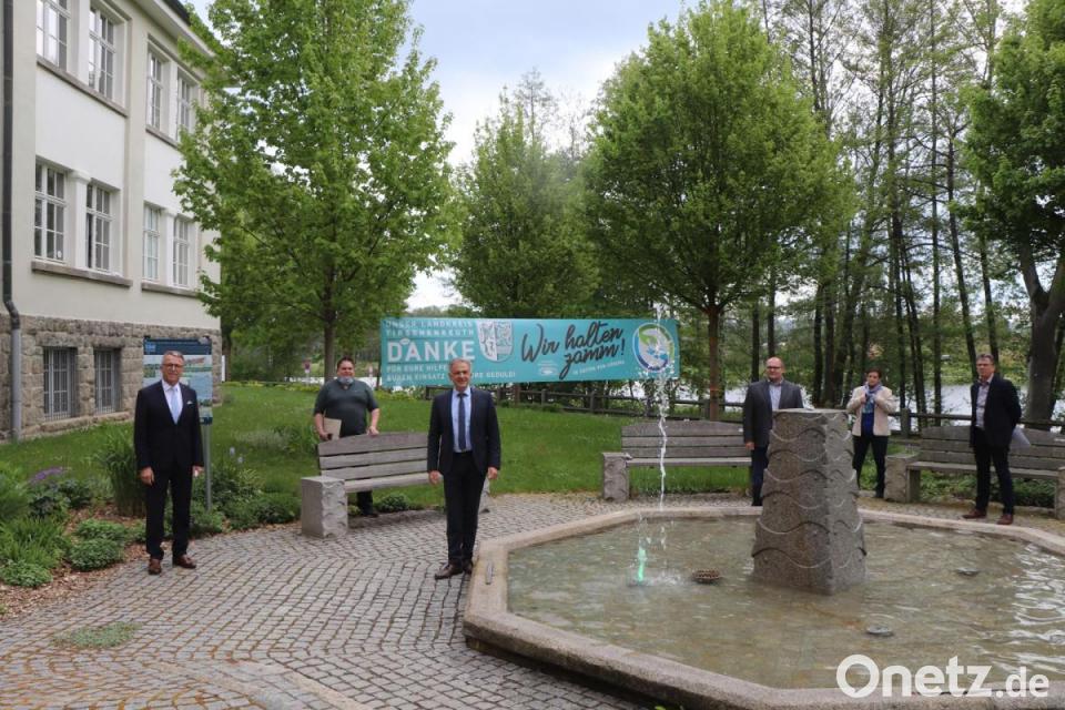 Einfach mal "Danke" sagen: Das will der Landkreis Tirschenreuth in der Coronakrise mit einem großen Banner und richtet sich damit an alle Bürger. Gut sichtbar von der Johannisstraße aus ist das blaue Transparent im Innenhof des Landratsamtes aufgehängt. Zehn Banner sollen insgesamt im Landkreis gehisst werden. "Wir wollen ein Zeichen setzen für diese gelebte Solidarität und das Miteinander in der schweren Zeit", sagt Landrat Roland Grillmeier bei der Vorstellung.