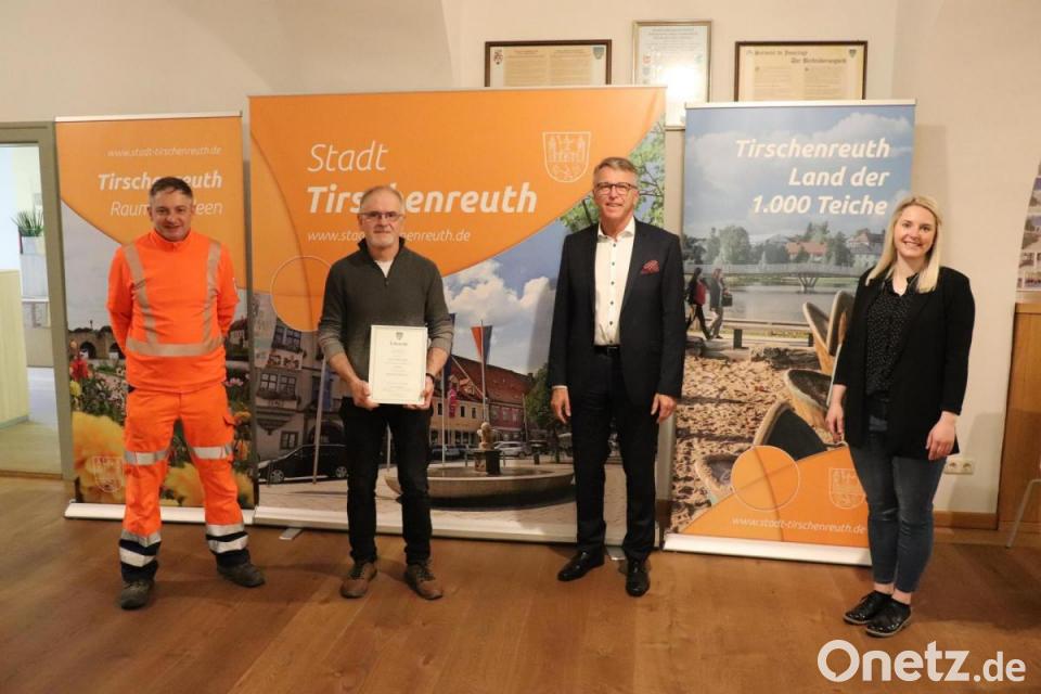 In diesen Tagen feierte Hans Bauer sein 40-jähriges Dienstjubiläum bei der Stadt Tirschenreuth. Im April 1982 begann sein Dienst im städtischen Bauhof als Mitarbeiter für Straßenbau-, Kanalisations- und Friedhofsarbeiten. Der gelernte Schreiner erhielt bereits im November desselben Jahres die weitere Tätigkeit im Winterdienst der Stadt, einige Jahre davon mit Weckdienst. Seit 2003 ist Bauer Schulhausmeister in der heutigen Mittelschule. Ebenso betreut er seitdem den Pausenverkauf. Neben der alltäglichen Arbeit zeigte Bauer auch mehrere Jahre Engagement im städtischen Personalrat, gleichermaßen bei den Fußballspielen, etwa bei den Turnieren mit der Partnerstadt Lauf a.d. Pegnitz. „Hans Bauer zeichnet sich bereits seit seiner Einstellung durch Fleiß, Belastbarkeit und hohe Zuverlässigkeit aus. Dafür gebührt ihm ein herzlicher Dank“, betonte Bürgermeister Franz Stahl