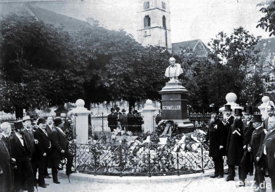 Nach seinem Tod wurde es ruhig um Schmeller. Auf Anregung des Historischen Vereins der Oberpfalz und Regensburg wurde schließlich in Tirschenreuth 1885 an zwei Tagen der 100. Geburtstag des großen Sohns der Stadt gefeiert. Dort wurde die Idee eines Schmeller-Denkmals geboren, die dann am 20. Juli 1891, also vor nunmehr 130 Jahren, in die Tat umgesetzt wurde. Seitdem steht "der Schmeller" am Tirschenreuther Marktplatz - alle paar Jahrzehnte mal etwas leicht verschoben - und schaut sich seine Stadt an.