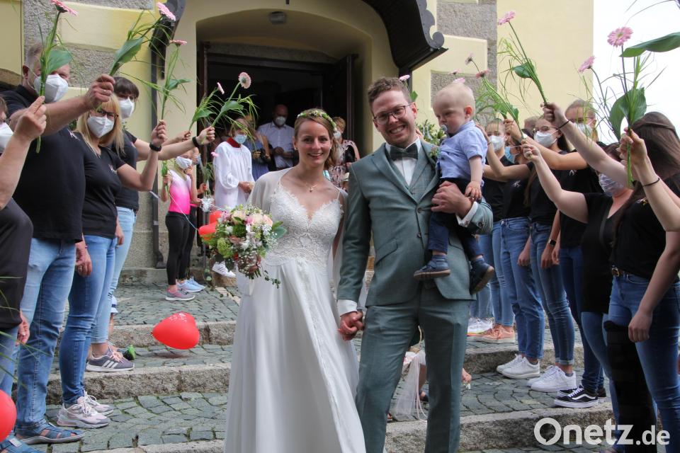 Nicht fehlen in dem Spalierreigen durften die Arbeitskollegen und -kolleginnen der Braut von der Stiftland-Reha Haas. Der anschließende weltliche Teil der Hochzeitsfeier fand im Gasthof "Zur Post" in Bärnau statt. Die junge Familie wohnt in Lohnsitz.