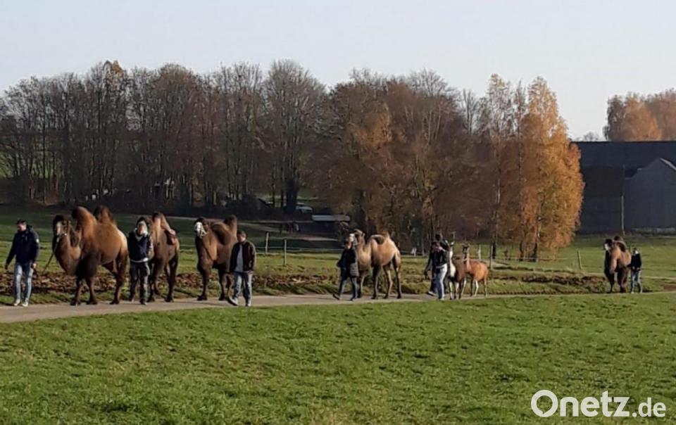 Beim Spaziergang an einem sonnigen November-Sonntag kann man nahe der Kreisstadt schon mal eine überraschende Begegnung machen: Die Kamel-Karawane bei Höfen ist aber kein alternatives Transport-Angebot. Vielmehr sind die ungewöhnlichen Tiere bei einem Züchter in der kleinen Ortschaft zu Hause und dürfen sich bei dem schönen Wetter auch einen erholsamen Fußmarsch gönnen.
