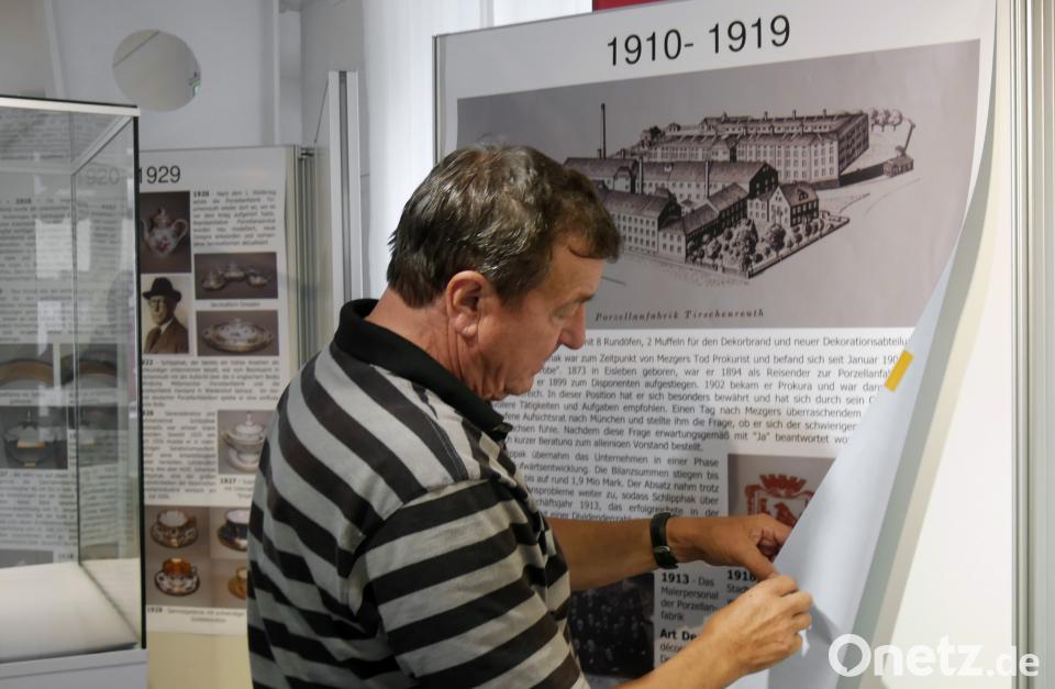 Der Rest ist Eigenbestand, der noch nie gezeigt wurde. Zudem befasst sich die Präsentation intensiv mit der langen Tradition der Tirschenreuther Kachelfabrik. Ein kunstvolles Handwerk bei dem es darum geht, gleichermaßen wärmende wie zierende Öfen für die gute Stube zu produzieren. Die Tirschenreuther Manufaktur besteht immer noch - heute unter dem Namen "Zehendner Keramik". Von großer Bedeutung ist auch der dritte Teil, das Rohstoffvorkommen direkt vor den Toren der Stadt: Hier werden Kaolin und Pegmatit abgebaut, in den "Schmelitz-Werken" zur fertigen Porzellanmasse verarbeitet und an Porzellanhersteller weltweit verkauft. Etwa 12 Leute sind damit beschäftigt, die Präsentation optisch ansprechend aufzubauen. Auf zahlreichen großformatigen Charts, deren Inhalt Franz Göhl in den vergangenen acht Wochen recherchiert hat, ist akribisch die Geschichte zu den jeweiligen Themen erklärt. Unterstützt wurde er von Josef Regner, Chef der Kachelfabrik, und Herta Bayreuther, Vorsitzende des Fördervereins. Info-Kasten