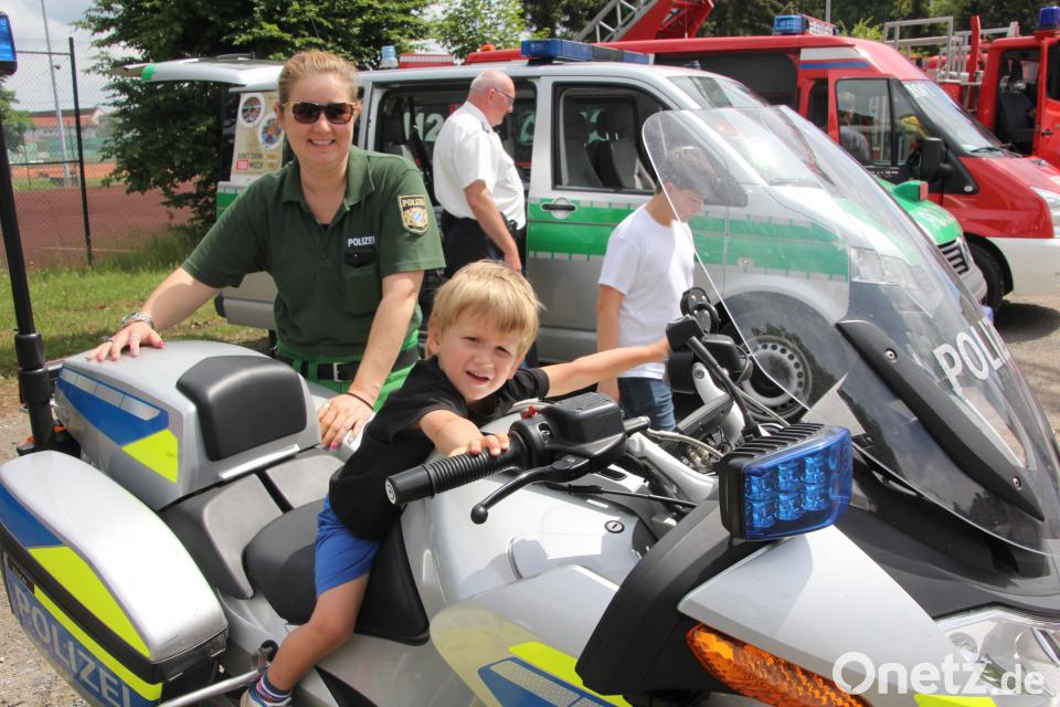 Die Polizeibeamten Hubert Bauer, Wolfgang Trottmann und Berthold Walbrunn, alle drei waren in ihre neuen blauen Uniformen geschlüpft, informierten und gaben bereitwillig Auskunft zu den vielen Fragen. Sogar Einstellungsbeamte waren vor Ort. Sie erklärten, welche Ausbildungswege es bei ihnen gibt. Natürlich durften sich die Kinder auch mal in ein Polizeiauto setzen oder auf einem Motorrad Platz nehmen.