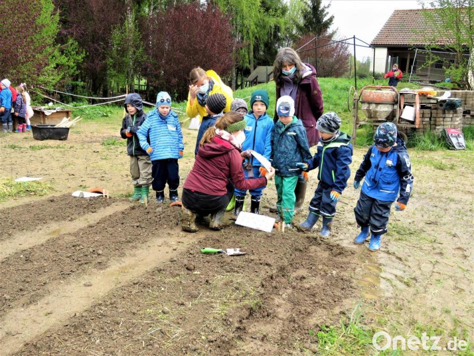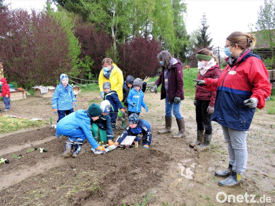 Was hinter dieser "Acker-Kita" steckt, macht den Buben und Mädchen richtig viel Spaß: Der Katholische Kindergarten "Unsere liebe Frau" hat sich einen eigenen Gemüsegarten gleich im angrenzenden Grundstück angelegt. Zwar startete das Projekt "Acker-Kita" am Dienstag bei wiederholten Regenschauern, was den kleinen Gemüsebauern aber nichts machte. Begleitet von den zwei Acker-Coaches, Kerstin Manner aus Schwandorf und Alina Beigang aus Bayreuth, durften die Kinder einen 0,5 mal zwei Meter großen Acker mit verschiedenen Pflanzen und Saatgut bestellen.