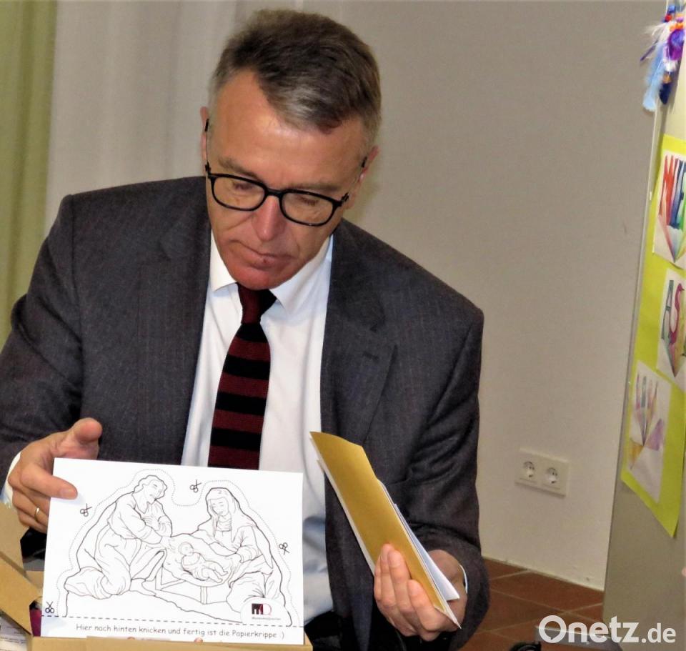 Erika Rahm hatte im Hinblick auf Weihnachten einen Bastelkoffer vor Augen. "Kinder basteln in der Weihnachtszeit liebend gern", erinnerte sie sich an ihre eigenen Sprösslinge im Advent. Franz Stahl, der selbst drei Kinder hat, konnte dem nur zustimmen. Gleichzeitig sollte in den Koffer aber auch ein "Stück Museum" und eine "Prise Weihnachten". Fündig wurde das Museumsteam bei dieser Aufgabe in der Krippenabteilung. Da sich dort eine wertvolle Papierkrippe befindet, kamen in den Koffer als Bastel-Set Kopien aus dieser Krippe. Die Kinder können sich die Heilige Familie und den Elefanten ausschneiden.