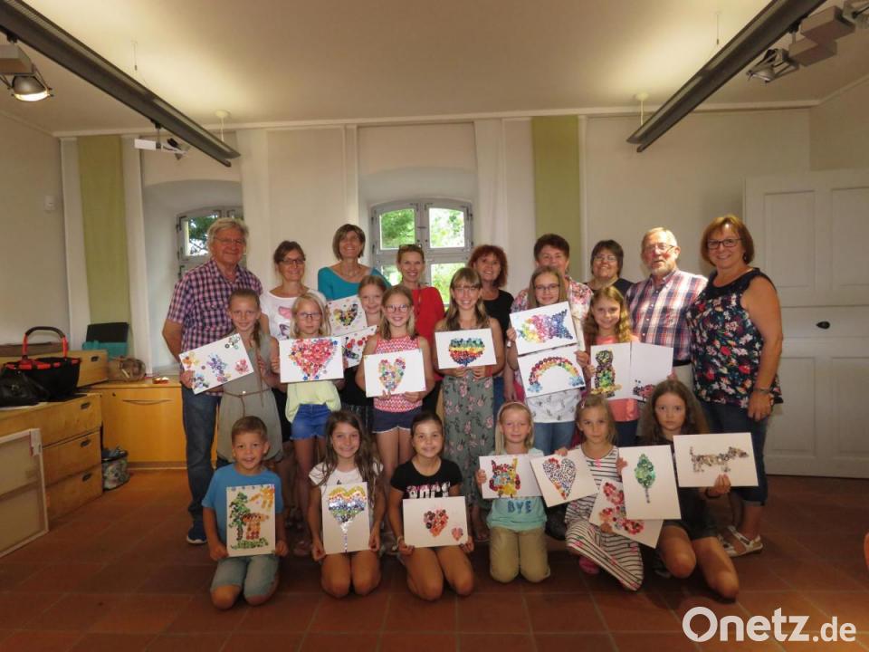 Die beiden KVT-Vorsitzenden, Petra Schicker und ihre Stellvertreterin, Kerstin Rumswinkel, freuten sich nicht nur über den Eifer der Teilnehmer. Beide lobten auch sehr die treuen Mitglieder, die sich jedes Jahr wieder gern zur Betreuung der Kinder extra Zeit nehmen. Ihr Dank galt aber auch dem Kartonagenwerk Liebenstein, wo die Künstler bei jedem noch so umfangreichen Bedarf an Kartons zum Malen, Zeichnen oder Basteln immer bestens unterstützt werden. Einen nicht zu unterschätzenden Beitrag zum Kinderferienprogramm des Kunstvereins leistete aber auch Erika Rahm vom MQ. Ihr Part war es diesmal unter anderem, die Künstler mit ausreichend Nachmittagskaffee gut zu versorgen.