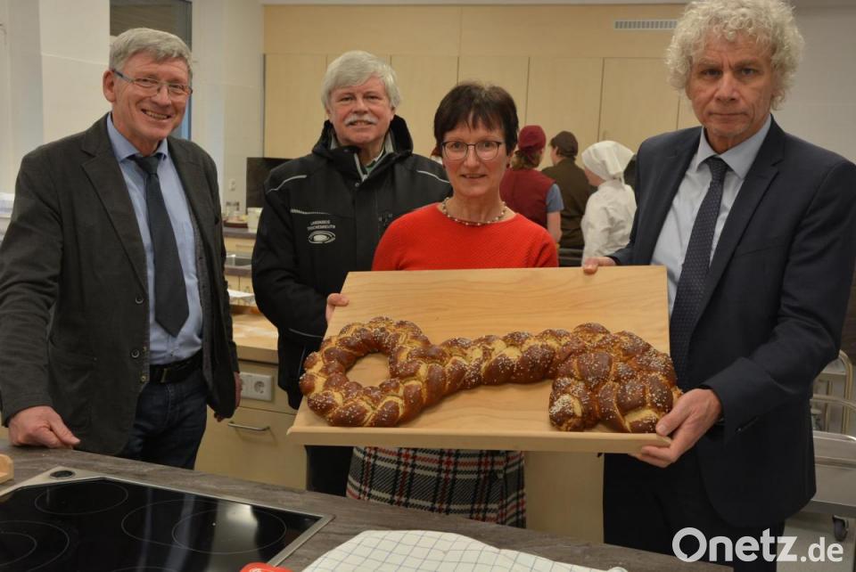 Zum Abschluss überreichte Landrat Lippert an die Vertreter der schule einen gebackenen Schlüssel aus Hefeteig. Beim Rundgang überzeugten sich die Gäste vom gelungenen Neubau.