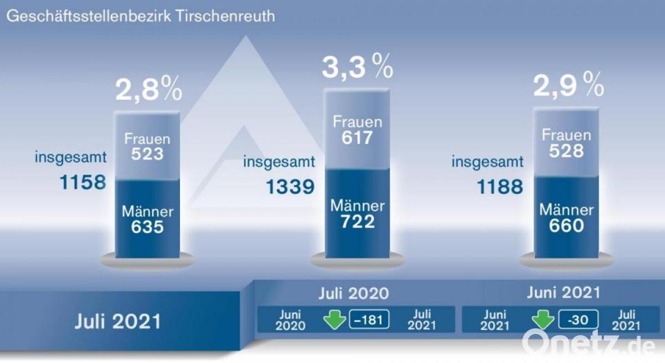 Im Landkreis Tirschenreuth waren insgesamt 1.158 Männer und Frauen von Arbeitslosigkeit betroffen, 181 Personen weniger als vor einem Jahr und lediglich 47 mehr als im Jahr 2019. 635 Männer und 523 Frauen sind arbeitslos gemeldet.