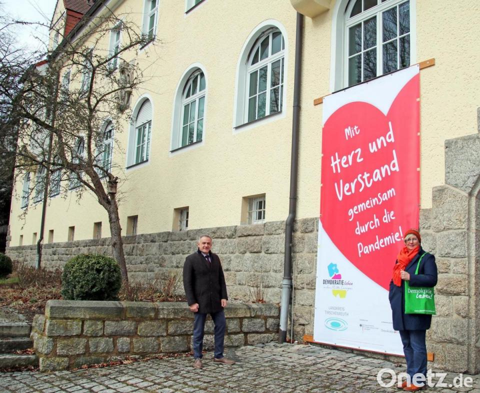 „Mit Herz und Verstand gemeinsam durch die Pandemie“: Plakate mit diesem Spruch sind seit Ende Januar überall im Stadtgebiet von Weiden zu finden. Dabei wird für mehr Miteinander in dieser Zeit geworben. Laut Mitteilung ist nun auf Anregung von Landrat Roland Grillmeier auch ein solches Banner mit diesem Spruch am Landratsamt Tirschenreuth angebracht.
