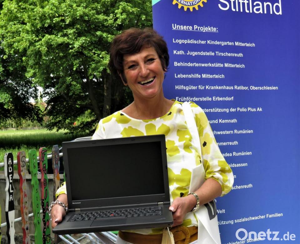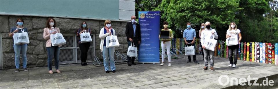 15 Laptops für das sonderpädagogische Förderzentrum Tirschenreuth: Damit überraschte Wolfgang Gropengießer, Präsident des Rotary-Clubs Stiftland und Geschäftsführer der IGZ Falkenberg, das Lehrerteam um Schulleiterin Ursula Huber. Die Laptops im Gesamtwert von etwa 4500 Euro, die Stefanie Preßl von der Marketingabteilung der IGZ Falkenberg überreichte, sind eine gemeinsame Spende des Rotary-Clubs und der IGZ Falkenberg.