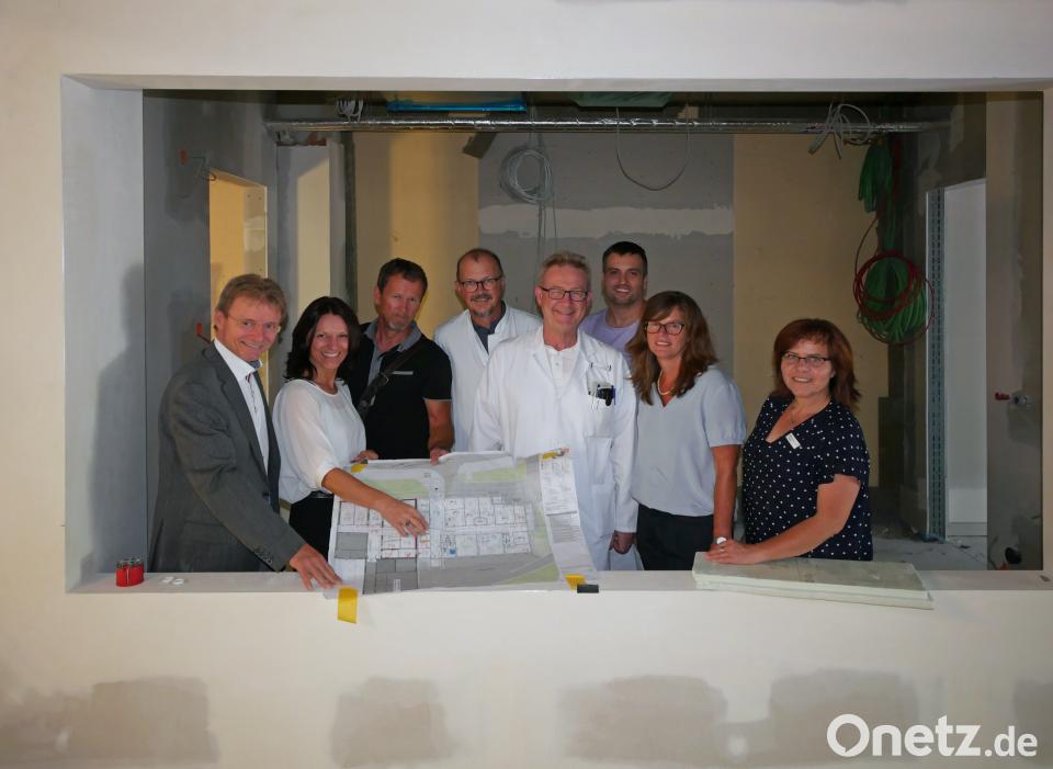 Die Einfahrt für den Rettungsdienst wird nach hinten in Richtung Kindergarten gesehen, "geschoben". Die neue Notaufnahme bekommt auch einen Schwesternstützpunkt, den es bisher überhaupt nicht gab. Der Anbau soll bis Ende des Jahres fertiggestellt sein.