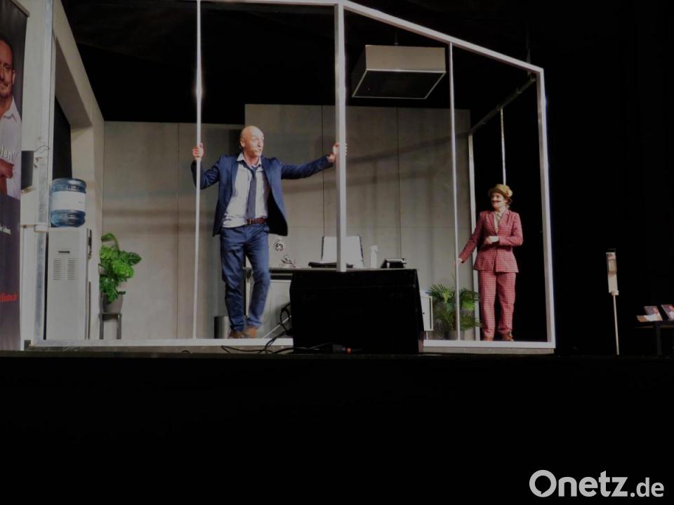 Der Hamburger Schauspieler Tim Grobe sucht auf der Kettelerhausbühne in der Rolle des Coach David Lautenschläger im Theaterstück "Glück in 90 Minuten" das Glück der Tirschenreuther im Publikum. "Was wollen Sie vom Leben?", lautet seine Frage. Gut verteilt wegen der Abstandsregelung rufen ihm die Zuschauer Stichwörter zu. "Frieden, Freiheit, Erfolg, Hoffnung, Gesundheit und - natürlich - Glück" zu. Aber ist alles Glück, was der Mensch dafür hält? Eine Frage, die sich die Zuschauer durchaus ernsthaft stellen. Beispiele dafür, was Glück ist oder nicht, geben vier Darsteller der Kammerspiele, besagter Tim Grobe (Coach David Lautenschläger), Madeleine Lauw (Tochter Laura und Geliebte Lara), Mario Ramos (Investmentbanker Carl-Christian Blau) sowie Lisa Tschanz (Frau Meckenstedt, Putzmann und Maus).