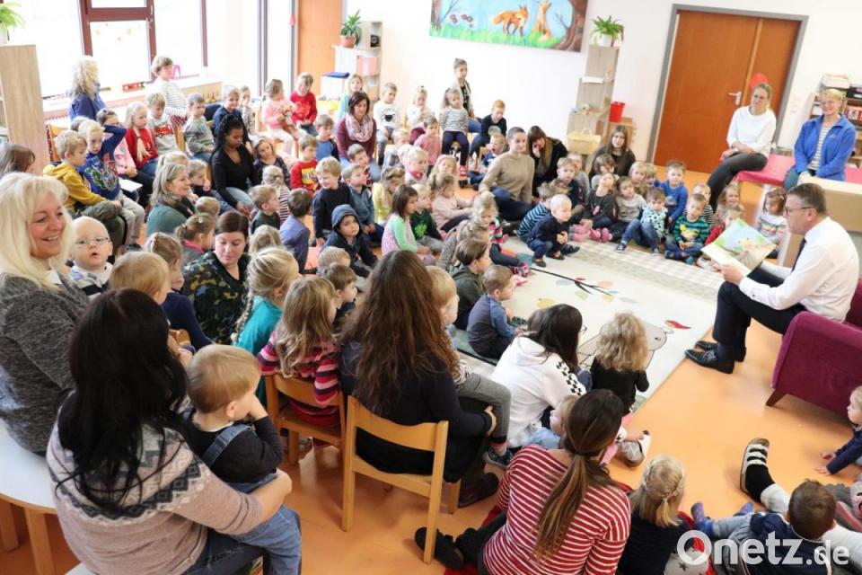 „Meins! Nein, meins!“: So lautete seine Geschichte von der Freundschaft zwischen dem kleinen Hasen und dem kleinen Bären, die durch einen Schatzfund auf eine harte Probe gestellt wird. Die Mädchen und Jungen waren begeistert – und bedankten sich mit leckerer Schokolade und selbst gemalten Bildern beim Stadtoberhaupt. Am kommenden Freitag können sich die Kinder auf eine weitere Geschichte freuen. Dann wird Cornelia Kolzenburg, Leiterin der Stadtbücherei, als Vorleserin erwartet.