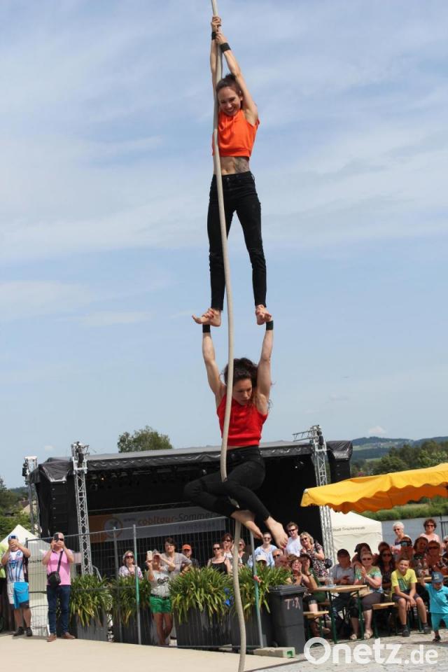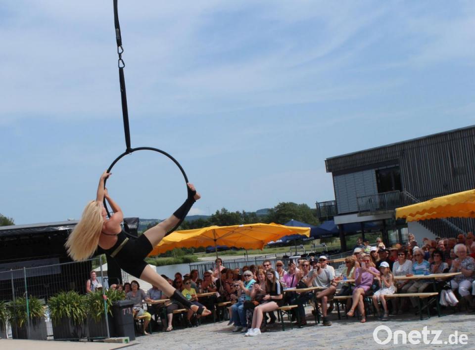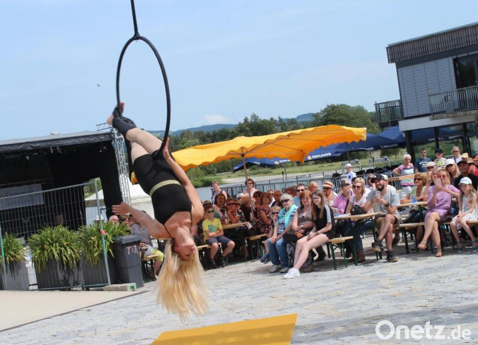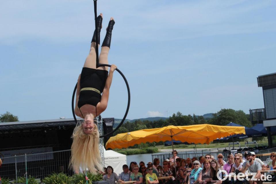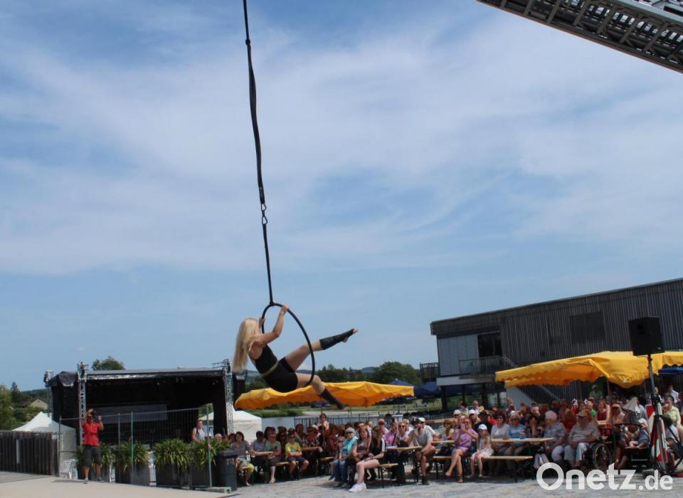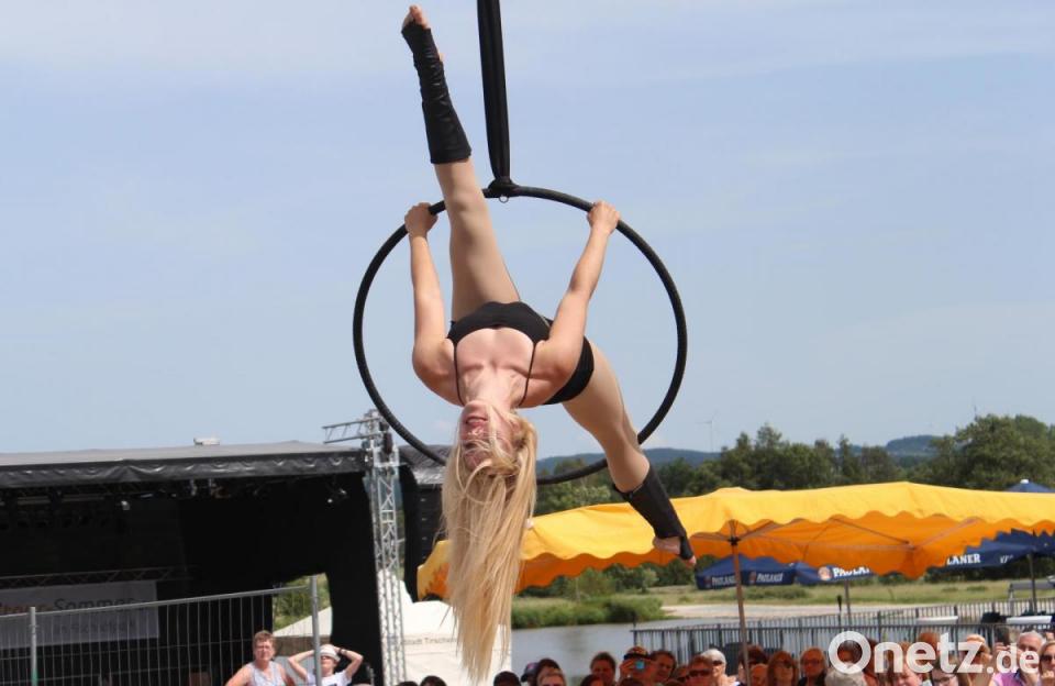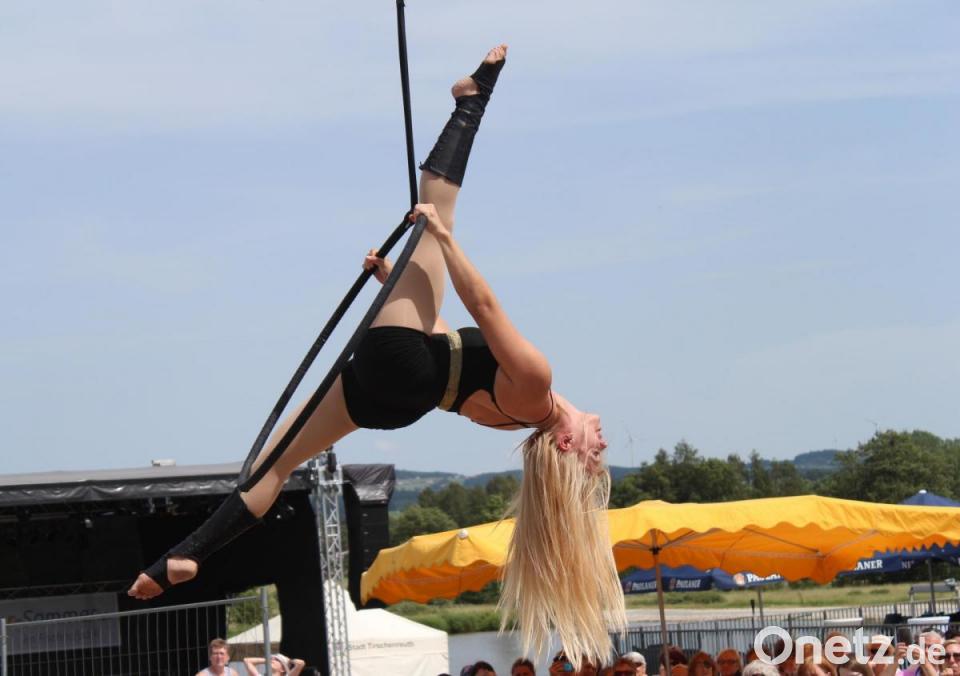 Zu dem Lied "Alles auf Anfang" von Sängerin Phela, die aus Falkenberg stammt, ließ sich die Tirschenreutherin in ihrem Ring in die Luft ziehen. Den Song hatte sie sich für ihren Auftritt gewünscht - "passend zur Heimat", wusste Vinzenz Rahn bei seiner Ankündigung. Die international erfolgreiche Künstlerin begeisterte mit ihrer Performance die Besucher in ihrer ehemaligen Heimatstadt, in der sie "gerne zu Besuch ist", wie sie verriet.