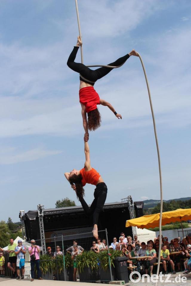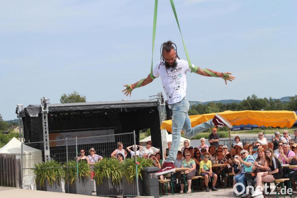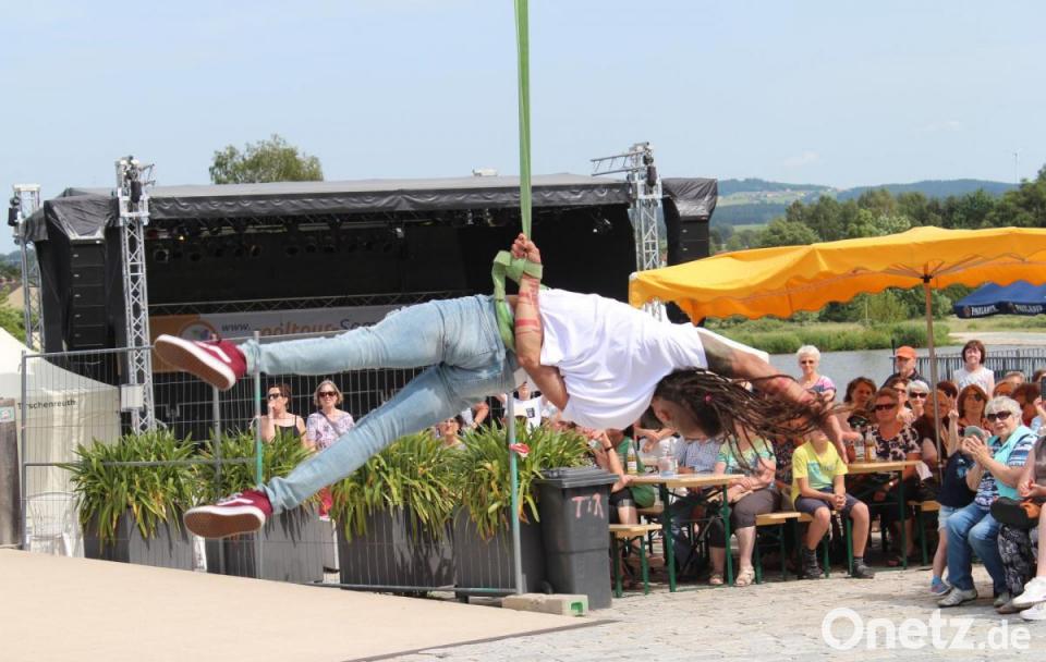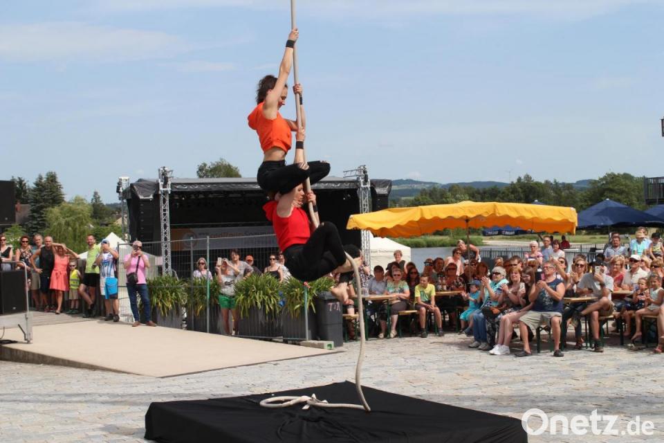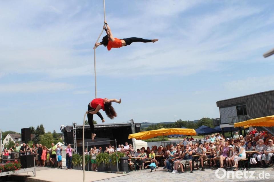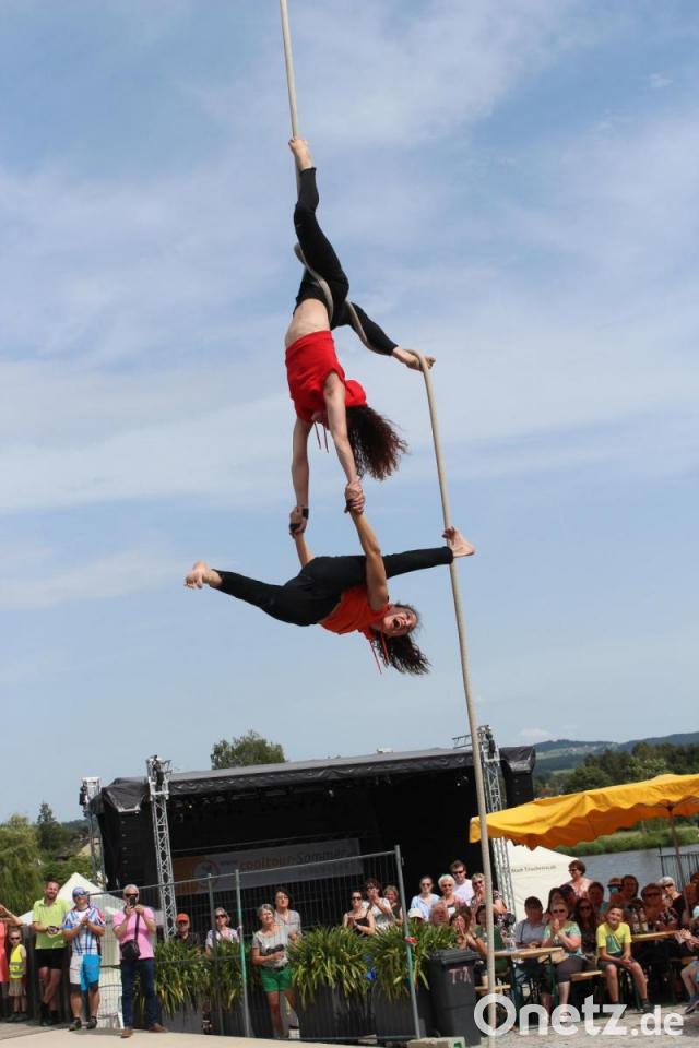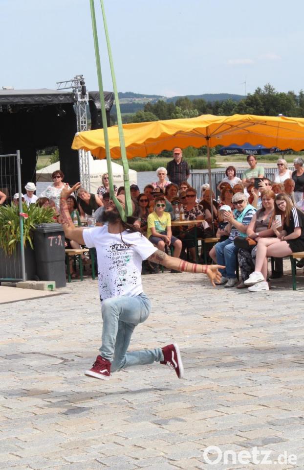 Zu dem Lied "Alles auf Anfang" von Sängerin Phela, die aus Falkenberg stammt, ließ sich die Tirschenreutherin in ihrem Ring in die Luft ziehen. Den Song hatte sie sich für ihren Auftritt gewünscht - "passend zur Heimat", wusste Vinzenz Rahn bei seiner Ankündigung. Die international erfolgreiche Künstlerin begeisterte mit ihrer Performance die Besucher in ihrer ehemaligen Heimatstadt, in der sie "gerne zu Besuch ist", wie sie verriet.