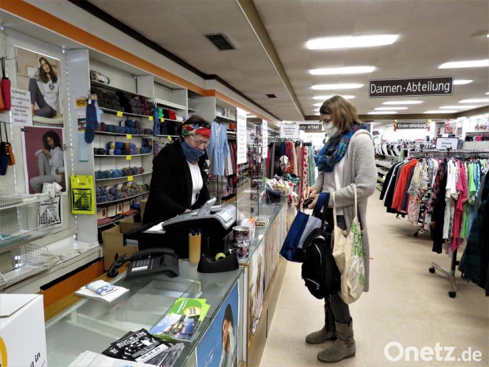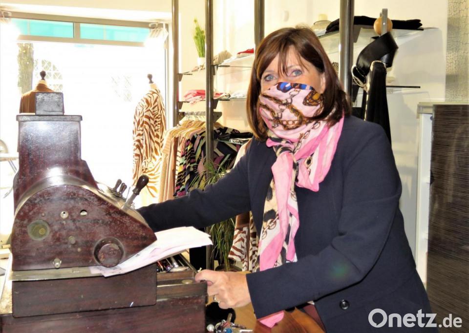 Im Modehaus Ottlinger kann man sogar, wenn die Lieferung kommt, Mund-Nasen-Abdeckungen in modischen Designs kaufen. Inhaberin Hanka Richter-Boßner behilft sich am Montag aber mit einem bunten Tuch. „Ich habe selbst noch keine Maske“, lacht sie. Zu ihr sei bisher nur eine Kundin gekommen, berichtet sie. Mit Mundschutz, natürlich.