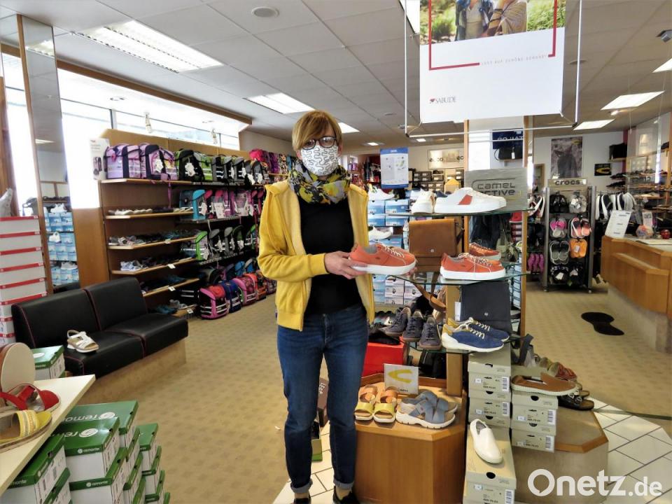 Christine Mörtl-Wurdack vom Schuhgeschäft in Mitterteich erzählt, dass sie Mundschutz für die Kunden vorrätig und zehn Exemplare für sich selbst gelagert habe. „Wenn die feucht werden, weil man schwitzt, müssen sie sofort runter“, sagt sie. Einlassen darf sie nur sechs Leute gleichzeitig. „Wenn eine Familie mit drei Kindern kommt, ist hier dicht.“ Die findige Geschäftsfrau lädt deshalb für die erste Woche der Wiedereröffnung Familien ein, sich einen Termin geben zu lassen in der Mittagspause, wo eigentlich geschlossen ist. Mörtl-Wurdack hat Desinfektionsmittel an der Tür, durch die Regale sei der Abstand gewahrt. Beanstandungen wegen fehlendem Mundschutz kann sie am ersten Öffnungstag keine melden.