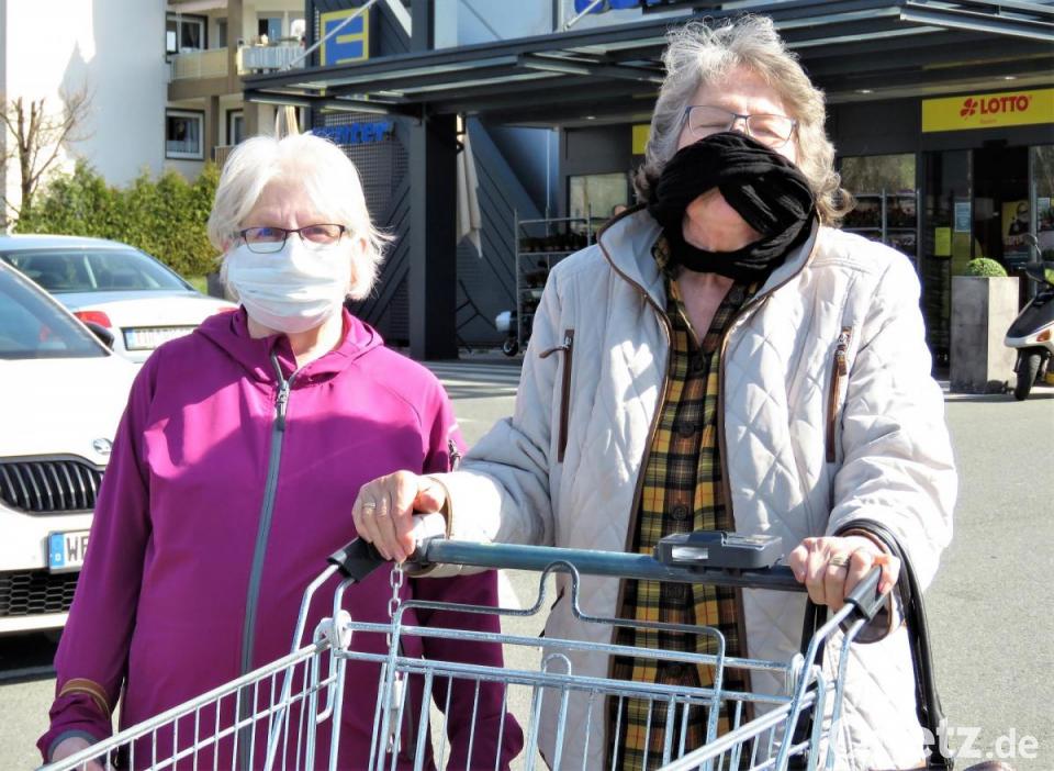Auch bei Edeka Legat in Mitterteich ist ziemlich viel los. Ein Ehepaar nimmt's mit Humor und Stil. Die beiden zeigen sich im Partnerlook mit roten und blauen Punkten auf dem selbstgenähten Mundschutz. Zum "Must have" gehört das mitgebrachte Desinfektionsmittel für den Handlauf der Einkaufswagen. Kaum Autos, kaum Kunden bei Netto: Lena Siller aus Mitterteich räumt ganz entspannt ihren Einkauf ins Auto. Sie könne noch gut auf Ausflüge verzichten. "Das muss eben jetzt sein. Da müssen wir zamhalt'n, dann wird's schon wieder."