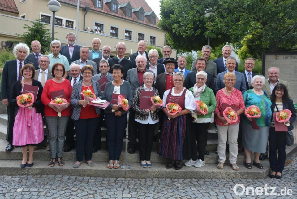 "Ohne die Bereitschaft, mehr zu tun als unbedingt notwendig, Verantwortung zu übernehmen und anzupacken, wäre es um unser Gemeinwesen schlecht bestellt", sagte der Landrat. Weiter war es dem Landrat wichtig, dass die Jugend Vorbilder zur Orientierung hat. "In diese Vorbildfunktion sind Sie durch ihren Einsatz hineingewachsen. Sie haben gezeigt, was durch Engagement erreicht werden kann und zwar nicht für Sie selber, sondern in erster Linie für Ihre Mitmenschen. Das, was Sie tun, ist Dienst an den Menschen, es ist zugleich auch ein Dienst an unserer Heimat und Ausdruck einer lebendigen, Lebens- und liebenswerten Bürgergesellschaft", meinte der Landkreischef in seiner Laudatio. Die Empfänger der Medaillen: Hannelore Bienlein-Holl. Die Fuchsmühlerin wurde 1983 zur AWO-Kreisvorsitzenden gewählt und gründete später die Bürgerhilfsstelle in Mitterteich, die Ambulante Kranken- und Altenpflege, den Mobilen Sozialen Hilfsdienst, "Essen auf Rädern" sowie das "Betreue Wohnen". Weiter ist sie eine Kommunalpolitikerin aus Leidenschaft, mit Unterbrechungen gehört sie dem Kreistag seit 36 Jahren an.
