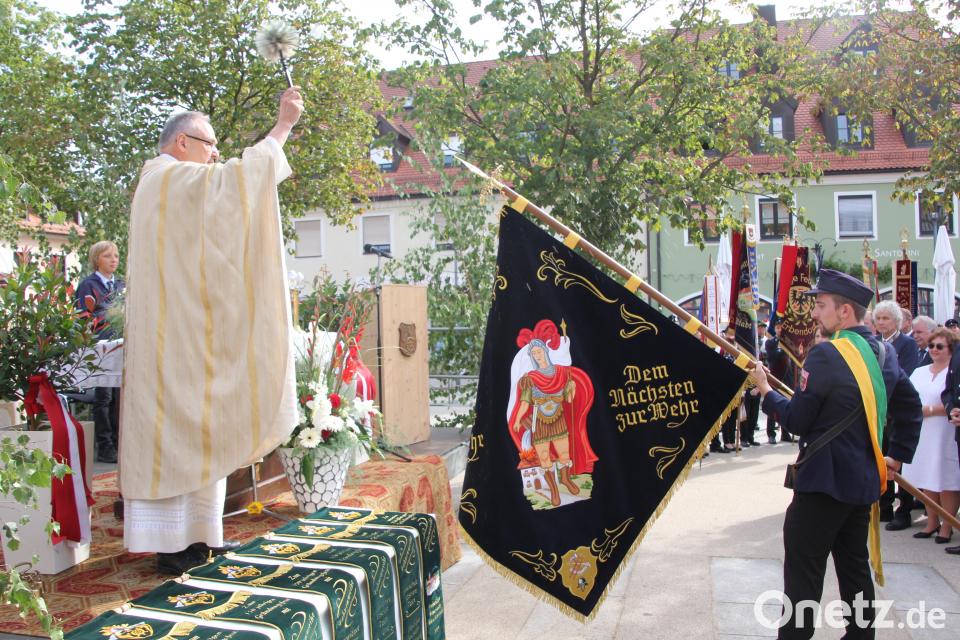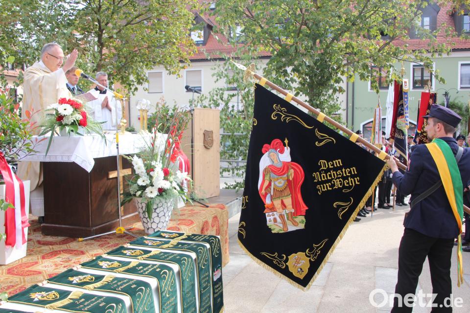 Zu Beginn des Gottesdienstes bekundete Stadtpfarrer und Regionaldekan Georg Flierl seine ganz besondere Freude über dieses "wunderbare Bild der vielen Feuerwehren mit ihren Fahnen". Gleichzeitig gratulierte er zum 150. Geburtstag, "zu 150 Jahre Dienst am Nächsten, zur Ehre Gottes". Die Feuerwehren würden mit viel Sachversand und Umsicht arbeiten, dafür könne man ihnen nicht genug dankbar sein.