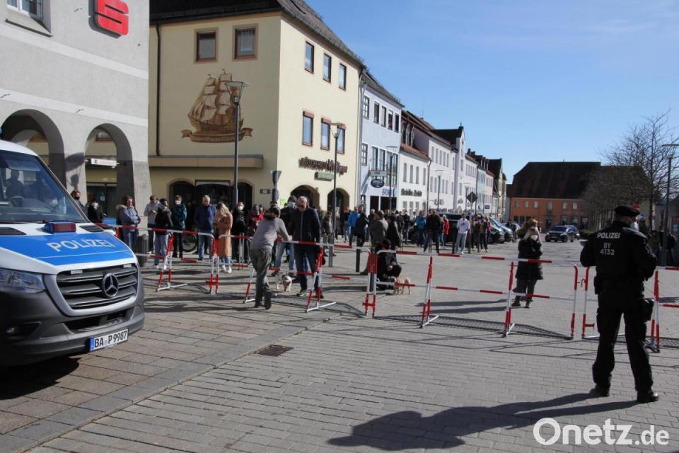 Letztendlich kamen über die zwei Stunden insgesamt knapp 100 Personen zu dieser "Querdenker"-Demo am abgesperrten oberen Marktplatz. Viele Bürger schauten sich alles lieber außerhalb der Absperrungen an. Die Polizei (PI Tirschenreuth und Bereitschaftspolizei Nürnberg) war mit großer Präsenz vor Ort. Maximal 100 Teilnehmer, mit Maskenschutz und Mindestabstand, so lauteten die Vorgaben des Landratsamts. "Es wurden alle Auflagen eingehalten, das Verhalten war sehr kooperativ“, verwies PI-Chef und Einsatzleiter Werner Schönfelder am Ende darauf, dass es keine Zwischenfälle gab.
