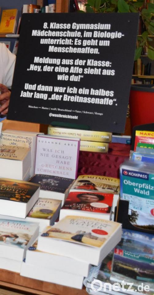 Für die beiden Frauen war schnell klar, Hannah Mehler mit ihrer Idee und dem Vorhaben zu unterstützen. Die 24-jährige Studentin entdeckte in den sozialen Medien auf Instagram die Ausstellungsbox "was ihr nicht seht" von Medienproduzent Dominik Lucha aus Ravensburg. Lucha will mit dem Kunstprojekt Menschen zum Nach- und Umdenken bringen, für eine anti-rassistische Zukunft. Derart viel Idealismus gefällt der jungen Tirschenreutherin, die in Darmstadt Soziale Arbeit studiert hat. Deshalb hat es in ihrem Kopf sofort geklingelt, als sie diese Ausstellung in einem Buchladen an ihrem Studienort entdeckte. "Ich habe sofort gedacht, dass könnten wir auch in Tirschenreuth zeigen", erzählt Hannah Mehler. Sie nahm mit dem Begründer der Wanderausstellung Kontakt auf und rannte offene Türen ein. Dominik Lucha sagte ihr eine Präsentation seiner Wanderausstellung in ihrer Heimatstadt zu. Nun ging es nur noch um die Finanzierung. Hannah Mehlers Weg führte umgehend zu Sonja Schmid, der Leiterin von "Demokratie leben" im Landkreis Tirschenreuth. Die Studentin wirkt in dieser Organisation im Jugendforum mit. Sonja Schmid war sofort bereit, Mehler bei der Aktion zu unterstützen, erklärte sie mit viel Freude bei der Eröffnung der Wanderausstellung vergangenen Freitag. Nun fehlte nur noch ein Veranstaltungsort. "Ich wollte einen Platz in der Mitte der Gesellschaft, weil Alltagsrassismus auch in der Mitte der Gesellschaft stattfindet", erklärt Hannah Mehler ihre Überlegungen. Sie griff zum Telefon und rief bei verschiedenen Stellen an. "Stefanie Teicher meldete sich nach nur einer halben Stunde sofort zurück und sagte zu. Da war für mich klar, dass die Präsentation in der Buchhandlung Rode stattfinden sollte", freute sich die 24-Jährige mit dem raschen Rückruf den idealen Ort gefunden zu haben.