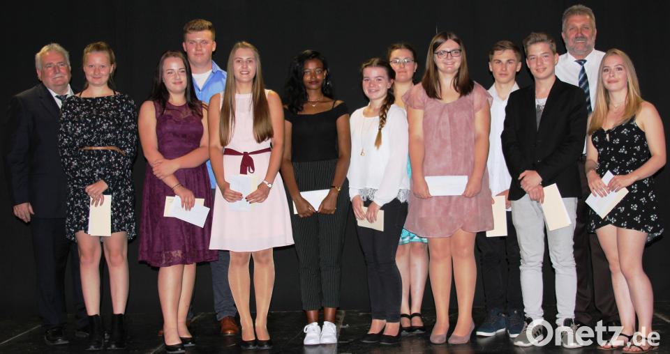 Nach der Vergabe der Zeugnisse wurden elf Schüler für ihre besonders guten Leistungen ausgezeichnet. Einen besonders herausragenden Quali abgelegt hatten Jakob Zahn, Jasmin Schiener, Laura Schneider, Fabian Steiner und Lena Heilig. Den mittleren Schulabschluss schafften mit Bravour Angelika Forster (1,1), Maria Feil (1,2) und Leon Stohlmann (1,5). Viola Janz, Lidia Misgana und Maria Prockl erreichten jeweils einen Notendurchschnitt von 1,8.