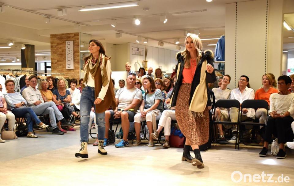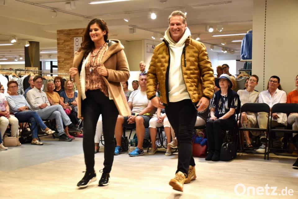 Von wasserabweisenden Outdoor-Jacken bis hin zu kuscheligen Teddy-Jacken oder dem hochwertigen Schurwoll-Mantel zum Hineinkuscheln erlebten die begeisterten Zuschauerinnen und Zuschauer eine Modenschau vom Feinsten. Nach dem zweiten Durchgang bedankten sich die Modehaus-Mitarbeiter bei den Models mit Sonnenblumensträußen und den Gästen für ihr zahlreiches Kommen.