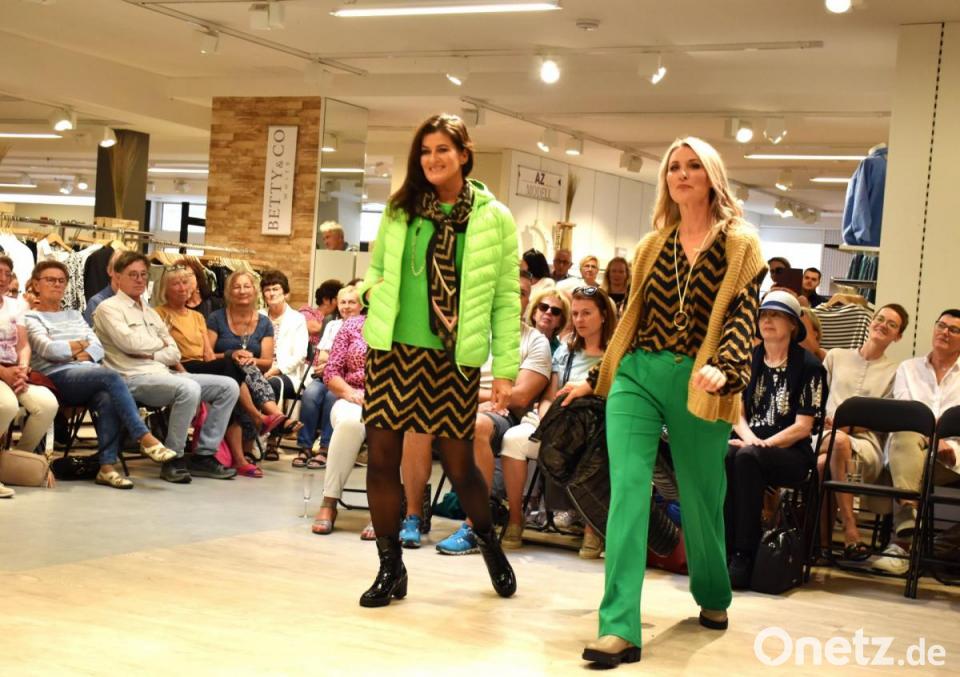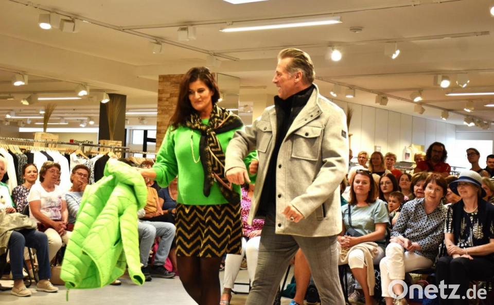 Die Haupttrendfarben - wusste im Vorfeld eine Modehaus-Mitarbeiterin - seien Lila, Flieder sowie unterschiedliche Grüntöne, wie auch Apfelgrün. Wer es dezenter mag oder Erdtöne bevorzugt, kam ebenfalls auf seine Kosten. Schöne Natur- sowie Gewürzfarben ergänzten die bunten Herbstkollektionen. Was ansonsten in den Kleiderschrank für den Herbst gehören könnte, moderierte Agnes Zimmermann charmant und fachlich kompetent. Nicht fehlen durften die Hinweise auf Stoffe, Material sowie Pflege der neuen Kleidung. Zimmermann legte unter anderem Wert darauf, aus Recyclingmaterial hergestellte Markenmode besonders herauszustellen oder gab Tipps zur Herrenmode. Etwa kann ein Hemd ein geeignetes Geschenk für den Mann sein. "Es ist bügelfrei. Da haben sie keine Arbeit damit", meinte die Moderatorin und lachte. Model Jürgen kaufte in Tirschenreuth sogar ein. "Die Weste geht mit nach München", verriet die Moderatorin schmunzelnd, während Jürgen diese präsentierte.