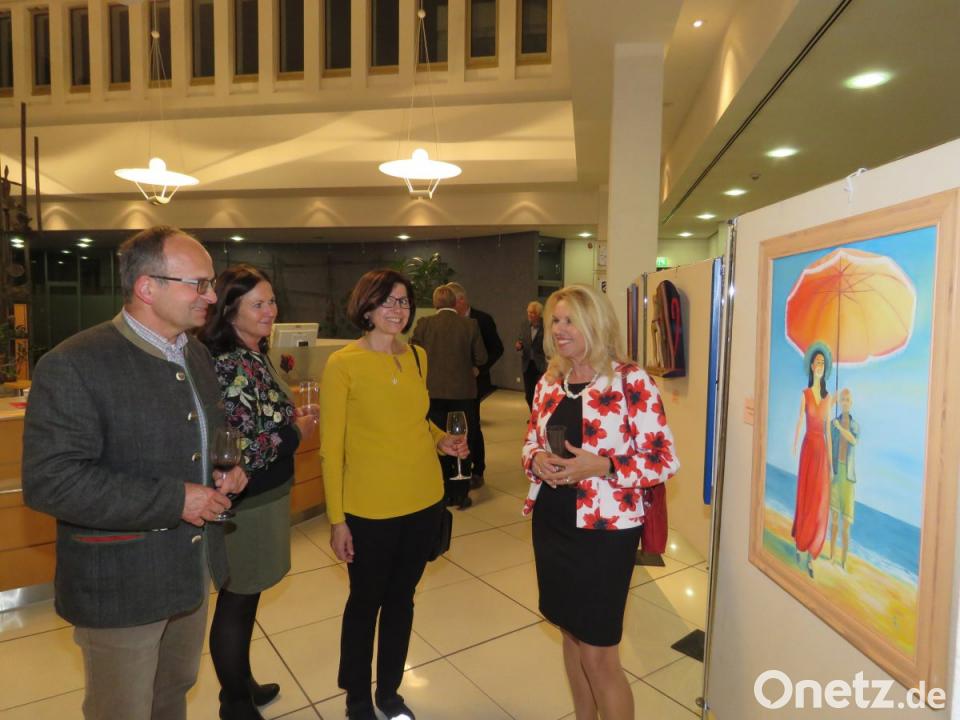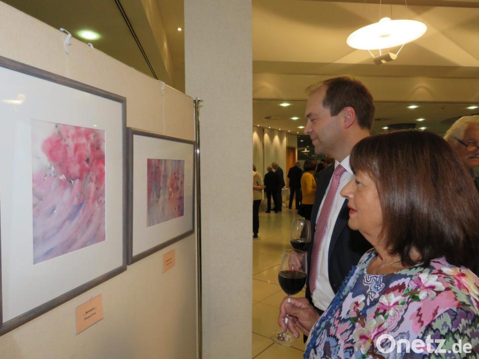 Übertragen auf die Heimat, sagte Petra Schicker, nütze es nichts, begehrlich auf die Leistungen anderer Kommunen zu schielen. Dies schüre Neid. "Richten wir es lieber so, wie es für uns passt!" Am Ende des offiziellen Teils überreichte Hans-Jörg Schön jedem Aussteller eine Rose. Selbstbewusst nahmen diesen zu 99 Prozent den Frauen gewidmeten Blumengruß auch die Männer gerne entgegen. Bei einem Imbiss schauten sich die Gäste in der Ausstellung um und ließen sich auf angeregte Gespräche mit den Künstlern zu deren Motiven ein. ___Die Ausstellung kann bis Montag, 15. Oktober, im Foyer der Sparkasse zu den normalen Öffnungszeiten besichtigt werden.