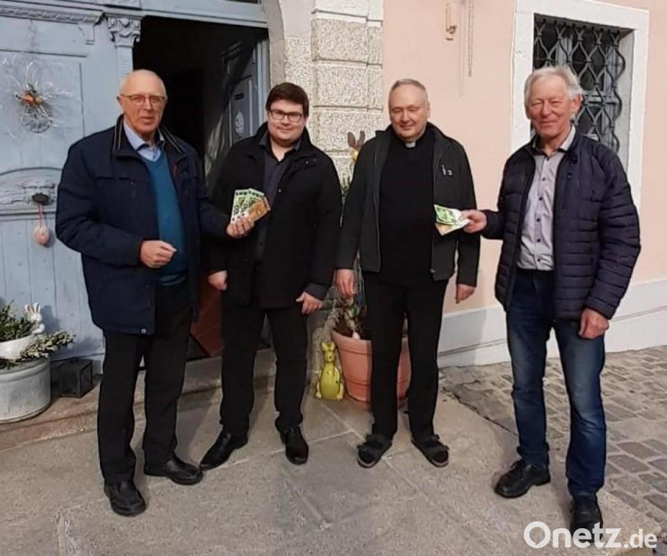 Die eingegangenen Spenden beim Vortrag über den Jakobsweg übergaben nun Rudolf Schön und Bernhard Stahl an Stadtpfarrer Georg Flierl. Dabei verzichteten die Referenten auf ihr Honorar und rundeten den Betrag noch auf, so dass nun ein Betrag von immerhin 500 Euro übergeben werden konnte. Dieser Erlös soll jetzt für eine notwendige Sanierung der Orgel in der Stadtpfarrkirche Tirschenreuth verwendet werden.