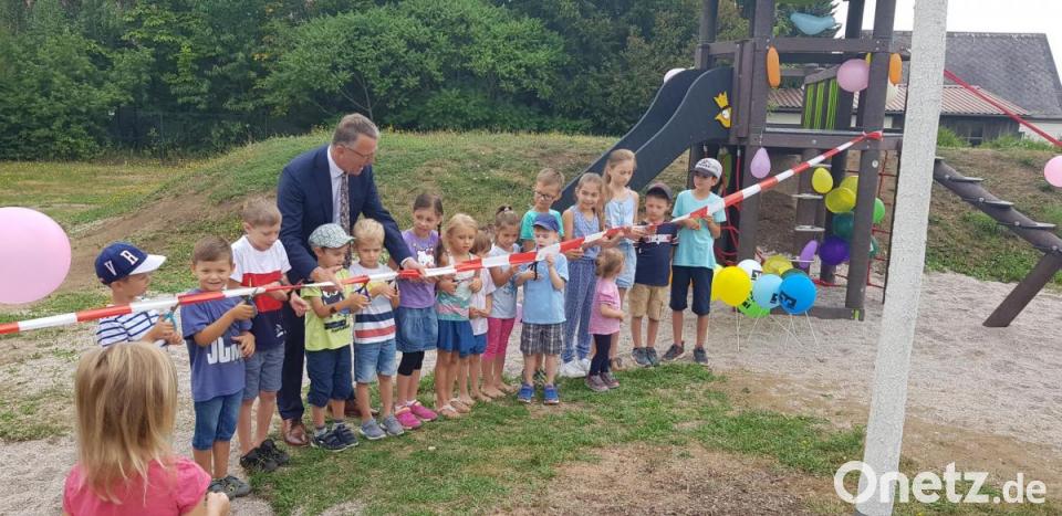 Bereits in der Planungsphase hatten die Anwohner des Büttellochs ihre Wünsche für neue Spielgeräte äußern können. Nun waren sie auch zur Wiedereröffnung des Spielplatzes mit Bürgermeister Franz Stahl eingeladen. So war es nicht verwunderlich, dass viele Eltern mit ihren Kindern erschienen sind.