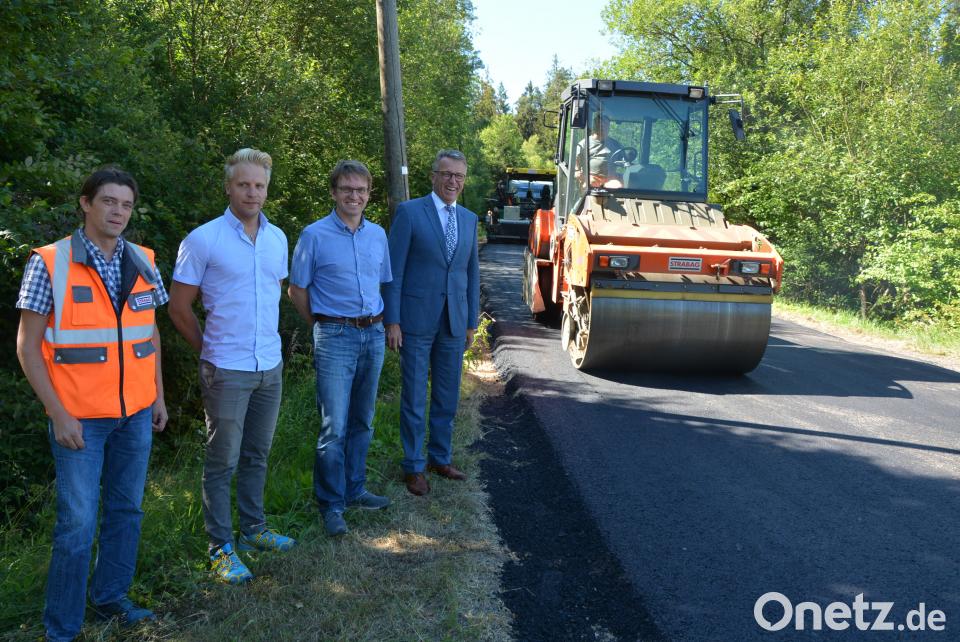 Am Montagvormittag überzeugten sich Bürgermeister Franz Stahl, Stadtbaumeister Andreas Ockl und Straßenmeister Michael Dörfler (Stadtbauamt) vom Fortschritt der Straßenausbauarbeiten der Gemeindeverbindungsstraße Wondrebhammer. Christian Seegerer (Strabag) stellte den Verantwortlichen die Bauarbeiten vor.