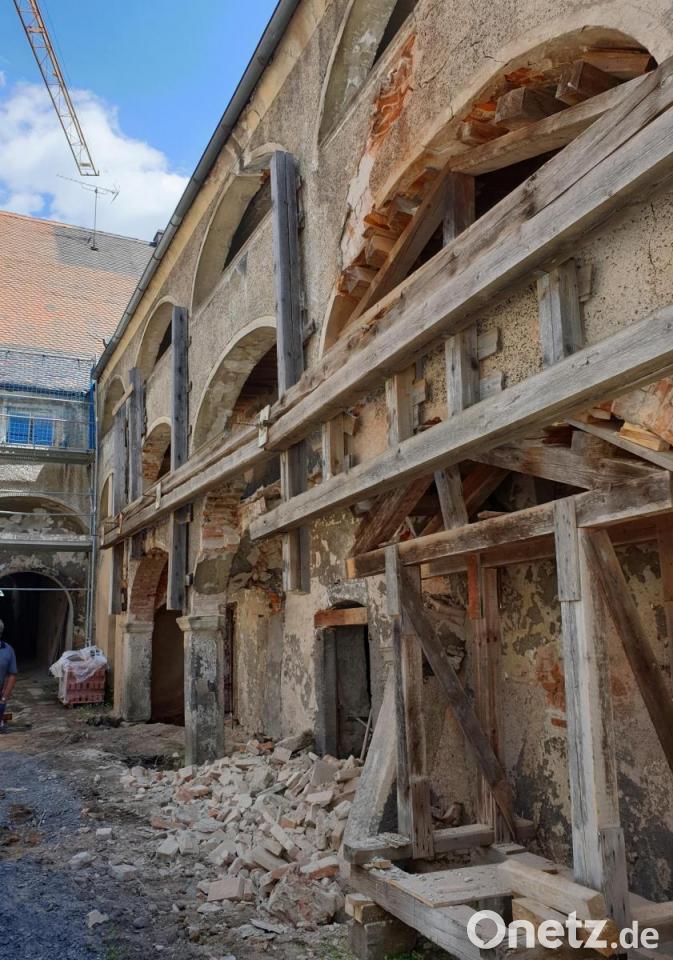 Erste Maßnahmen haben einen Teil eines Bogens im Erdgeschoss einstürzen lassen. Wie es jetzt weitergehen soll, wird von Gesprächen mit dem Statiker und dem Denkmalamt abhängig gemacht. Nach den Plänen sollen im Zuge der Sanierungsmaßnahme an den Gebäuden zum Marktplatz hin auch die alten Arkaden saniert werden. Diese Maßnahme für rund 600 000 Euro finanziert die Stadt. Mit der Sanierung wird allerdings keine Nutzung des alten Gebäude verbunden sein.