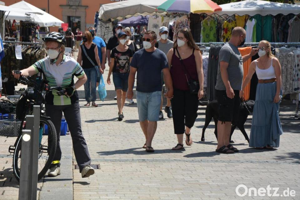 Strahlender Sonnenschein begleitete die Besucher beim Einkaufsbummel. Weitestgehend eingehalten wurde die Maskenpflicht und die Einbahnstraßenregelung auf beiden Marktplatzhälften. Die Verkaufsbuden waren ebenfalls in Abständen aufgebaut. Die Marktbesucher nutzten die Gelegenheit, Ausschau nach Schnäppchen zu halten. Das Interesse an den Waren hielt sich zwar in Grenzen, doch schon ein Bummel durch beide Marktplätze erfreute die Menschen. Die Auswahl in der Marktständen war groß, diese reichte von Bekleidung, Spielwaren, Obst, Gemüse, bis hin zu Blumen, Marmeladen und Käse. Und wer nach einem Bummel auf beiden Marktplätzen noch nicht genug hatte, durfte sich in einem der belebten Cafes noch etwas Herzhaftes gönnen. Kurzum, endlich wieder etwas gelebte Normalität in der Kreisstadt.