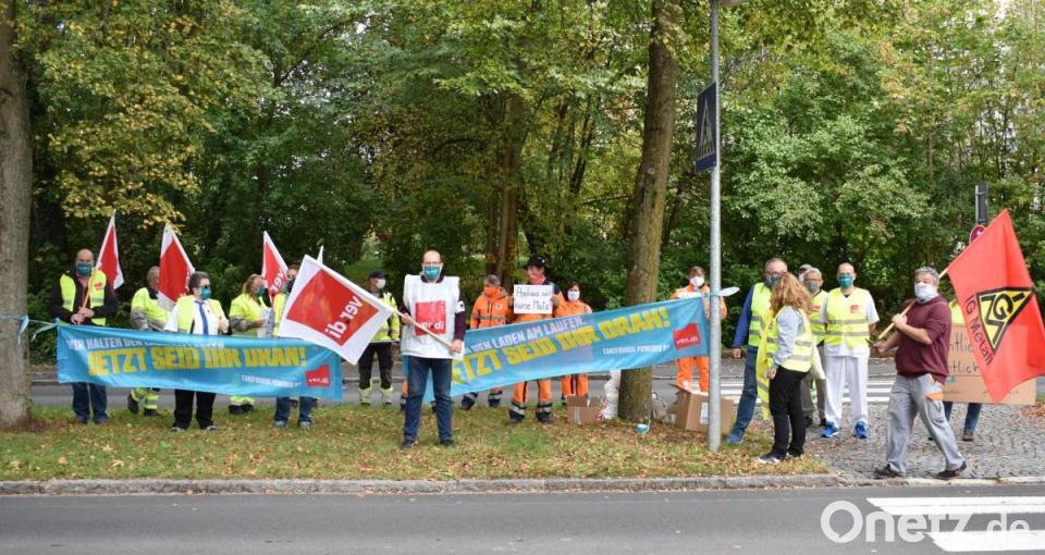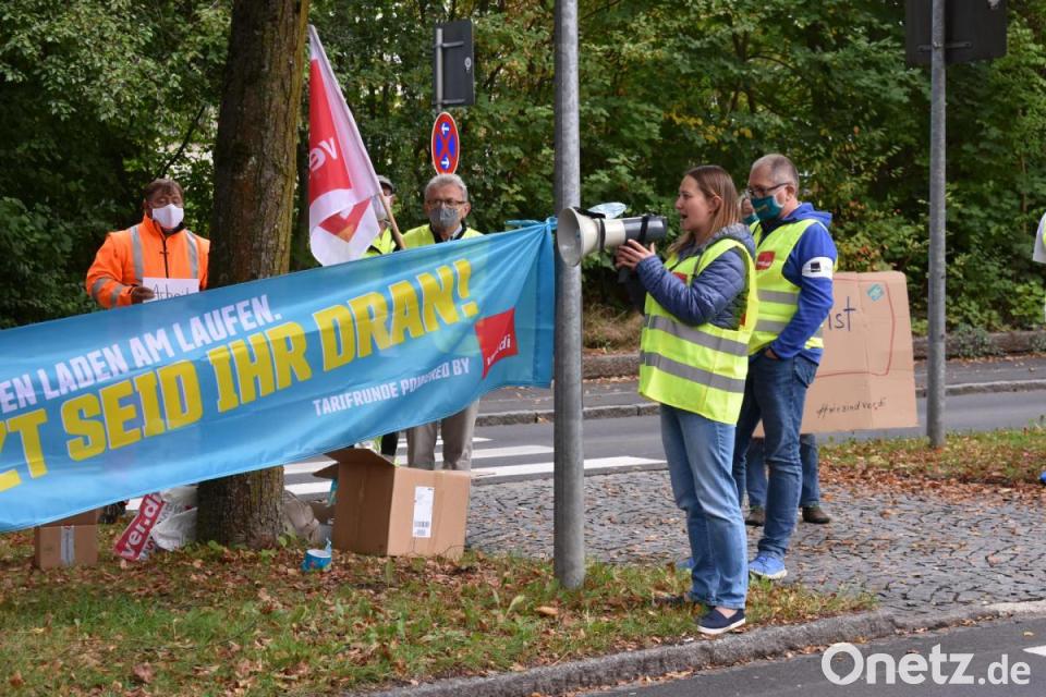 Die Organisatoren verteilten gelbe Westen, Fahnen und Mund-Nase-Masken. Auf einen großen Banner stand: "Wir halten den Laden am Laufen. Jetzt seid ihr dran." Die Veranstaltung sollte nicht den Klinik-Alltag lahm legen, sondern ein Signal für die Arbeitgeber und die Politik sein. "Die Coronakrise hat gerade die Beschäftigten in der Pflege schwer gebeutelt", erklärte Gewerkschaftssekretärin Marina Mühlbauer von Verdi Bezirk Oberpfalz. "Bei den Tarifverhandlungen wollen die Arbeitgeber von finanzieller Anerkennung nichts mehr hören, am vergangenen Wochenende verstrich die zweite Tarif-Verhandlungsrunde mit Bund und Kommunen ohne ein Ergebnis", so Mühlbauer.