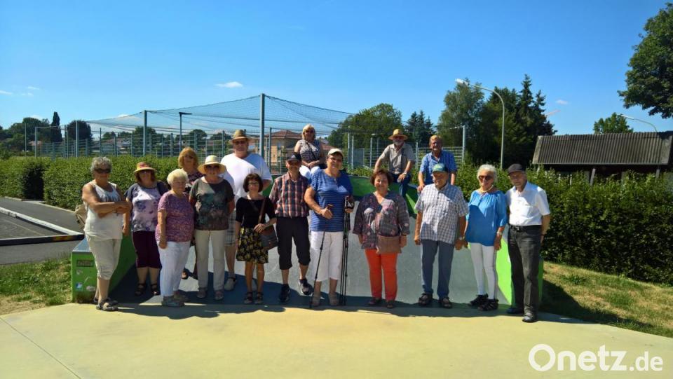 Norbert Schuller informierte über den geplanten Wohnmobil-Stellplatz und die Ablehnung der Bauflächen aufgrund der landesplanerischen Vorgabe der Regierung. Die Gruppe nutzte die schattigen Sitzgelegenheiten im Park für eine Pause, bevor es zum FC Sportheim zurück ging.