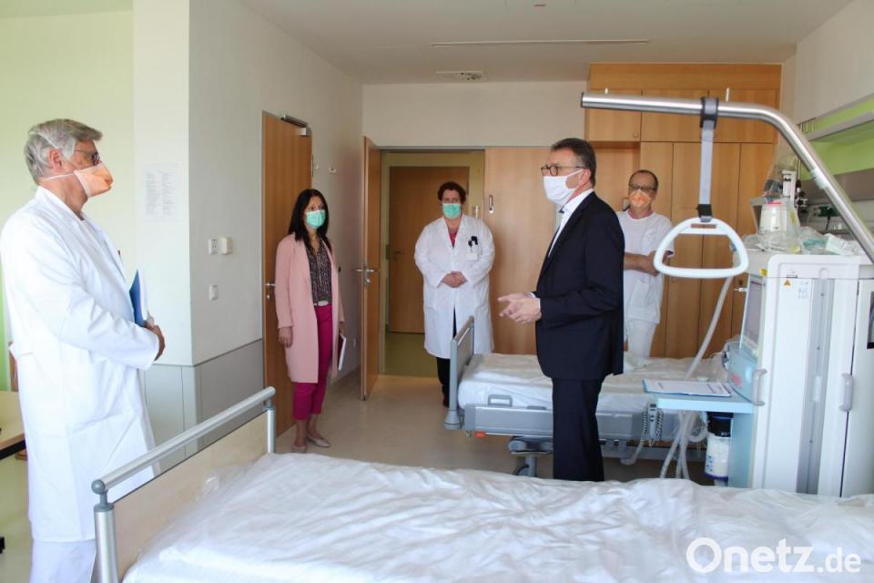 "Sie zeigen eine sehr menschliche Art und sehr gute Kommunikation in dieser schwierigen Zeit", so Stahl, der auch auf die enorme Bedeutung und Qualität dieser Häuser des Klinikverbunds gerade in der aktuellen Situation hinwies. Die Chefärzte, Professor Dr. Edgar Pscheidl und Dr. Rafael Ulrych informierten den Tirschenreuther Bürgermeister dann über die aktuelle Situation vor Ort, auch über die sensiblen Bereiche der Intensivstation. Nicht nur am Klinikum Weiden, auch am Krankenhaus Tirschenreuth werde hochqualitative Medizin geleistet: "Durch die Absage elektiver und ambulanter Operationen konnten wir die Kapazitäten erhöhen. Das Personal, das derzeit nicht im OP benötigt wird, ist jetzt in der Notaufnahme tätig, die Anästhesiepflege aus dem OP unterstützt jetzt die Intensivstationen", erklärten die beiden Chefärzte, die auch darauf hinwiesen, dass andere Notfälle weiterhin auf der Intensivstation behandelt werden können.