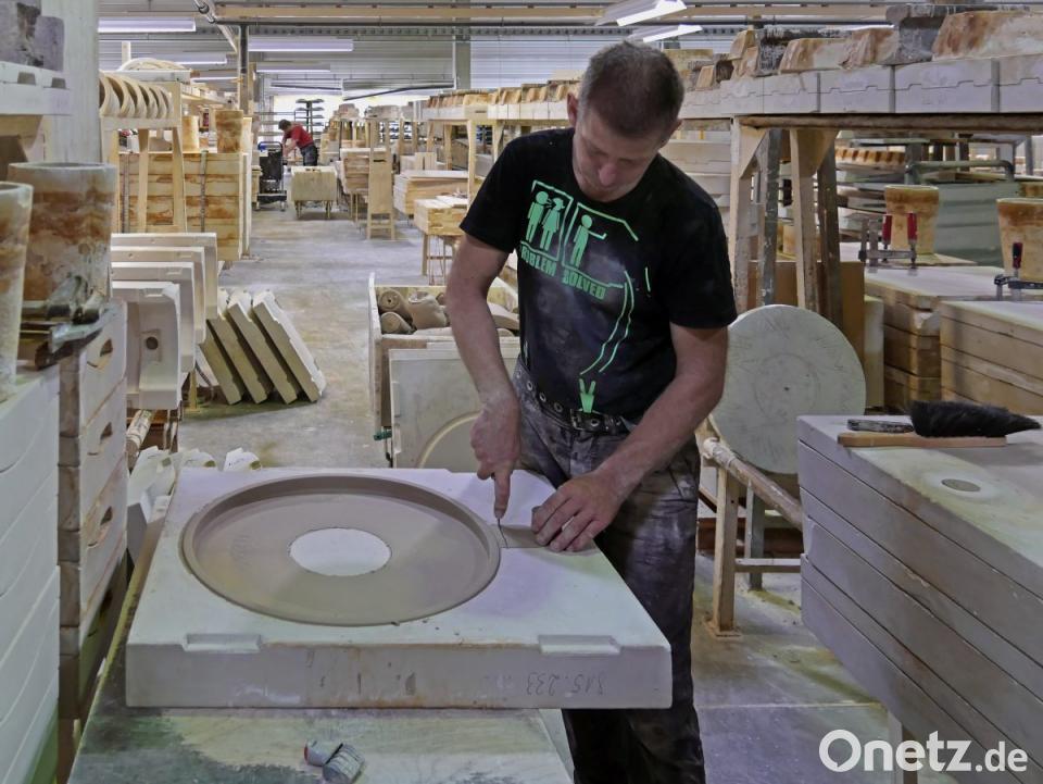 Bis vor 15 Jahren konnten Kacheln nur bis 22 Zentimeter Länge hergestellt werden. Heute ist erst bei 88 Zentimeter Schluss. In Deutschland gibt es noch fünf Manufakturen. Bereits seit sechs Jahren fertigt die Firma Spezial-Waschbecken im großen Stil. Die drei Zentimeter dicken vollwandigen Becken kommen zum Beispiel in Kindergärten, Schulen oder Kasernen zum Einsatz – überall da, wo es große Waschräume gibt und Stabilität gefragt ist. Neben einer Firma in der Türkei ist Zehendner der einzige Betrieb weltweit, der dieses Spezialsegment bedient. „Das passt zu unserer Philosophie: Wir nutzen Nischen und produzieren das, was der Vollautomat nicht machen kann, bis zur Kleinserie“, so Reger.