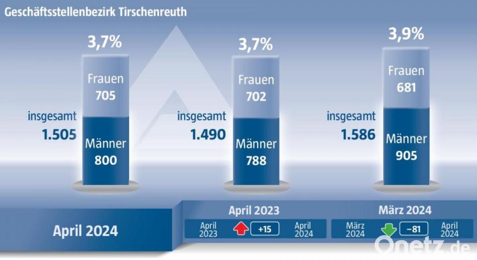 Mit einer Arbeitslosenquote von 3,7 Prozent verbessert sich der Landkreis Tirschenreuth im Vergleich zum Vormonat um 0,2 Prozentpunkte. Im Vergleich zum Vorjahr blieb die Arbeitslosenquote auf dem gleichen Niveau. Die Zahl der arbeitslosen Personen liegt bei 1.505 Erwerbslosen. 792 offene Arbeitsstellen sind gemeldet.
