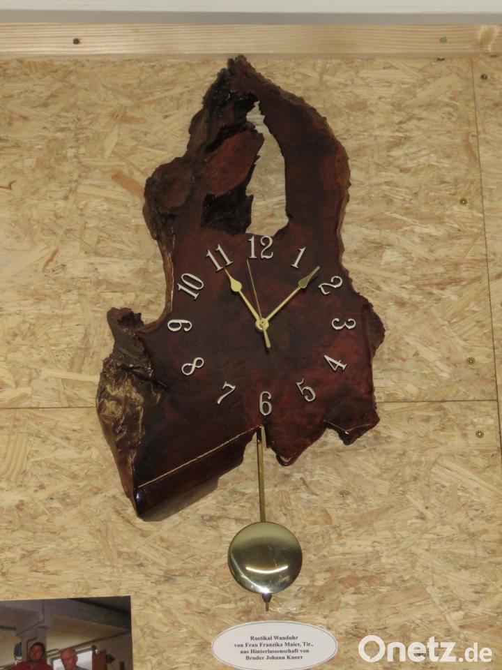 Stolz zeigte Konrad auf eine skurril geformte Uhr aus Holz, die von Amerika aus den Weg in die Heimat zurückgefunden hat. Heimat deshalb, weil das gute Stück von Schreiner Johann Knott aus Tirschenreuth gefertigt wurde, der nach Amerika ausgewandert ist. Knott habe in der Tirschenreuther Schreinerei Wolfrum sein Handwerk erlernt, wusste Konrad. Nun ist Johann Knott fern der Heimat in Amerika verstorben, sein Nachlass kam zurück nach Tirschenreuth. Als die Erben dem Arbeitskreis einige Werksstücke des Schreiners anboten, darunter die voll funktionstüchtige, handgefertigte Uhr, hat Herbert Konrad nicht Nein sagen können.