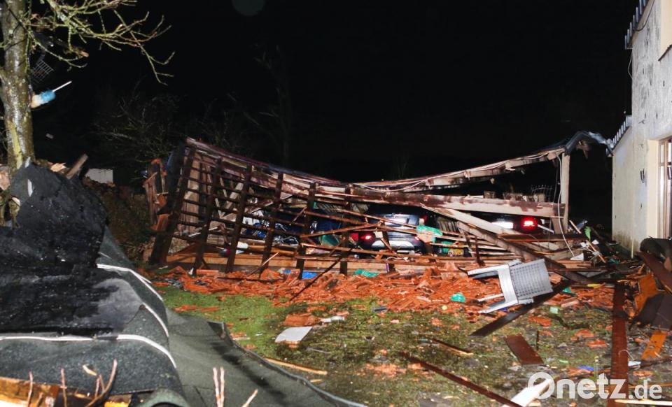 Der kurze, heftige Sturm hatte in dem Ort an der Grenze zu Belgien Dächer abgedeckt und rund 30 Häuser beschädigt. Zehn Häuser davon seien vorerst nicht mehr bewohnbar, hatte ein Sprecher der Feuerwehr-Einsatzleitung am Mittwochabend der Deutschen Presse-Agentur gesagt. Zwei Häuser im Ort Roetgen hätten kein Obergeschoss mehr. Es habe einen Leichtverletzten gegeben, der vorsorglich mit einem Rettungswagen in ein Krankenhaus gebracht worden sei.