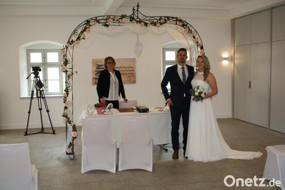 Gegen die Liebe ist auch das Coronavirus machtlos – und darüber freute sich niemand mehr als Bürgermeisterin Carmen Pepiuk, die den Seminarraum im Jugendhaus Meierhof als Trauungszimmer einweihte und damit zugleich die erste standesamtliche Trauung in Trabitz seit mehr als 40 Jahren vollzog. Unter dem Rosenbogen im Westflügel des einstigen „Memory“ gaben sich Carina Janker und Florian Merkl das Jawort.