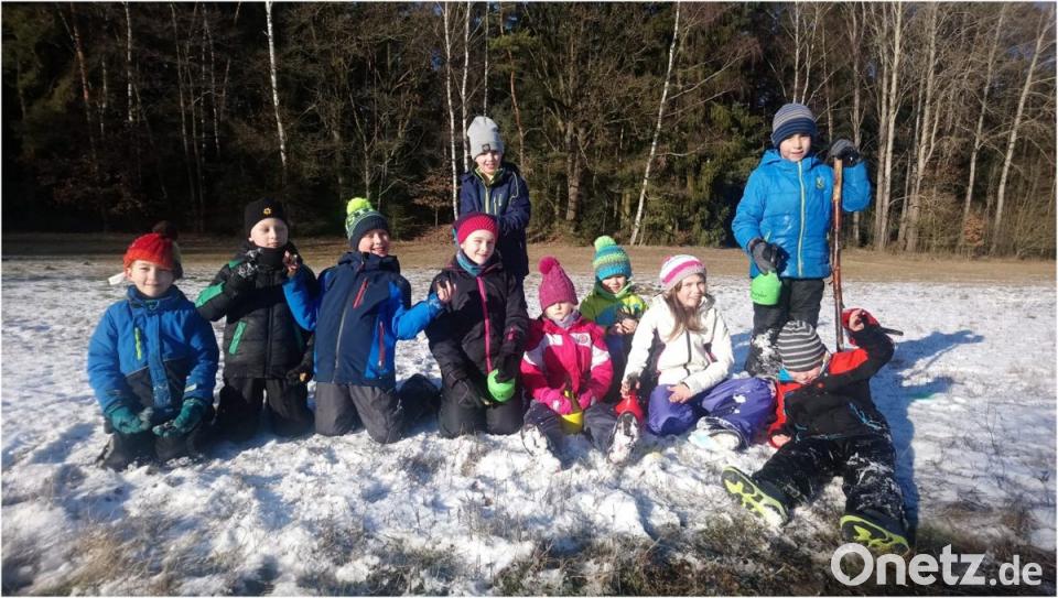 Weil sich längs des Grünbachs noch immer eine bunte Tierwelt tummelt, gab es für die Mädchen und Buben fortwährend neue „Hieroglyphen“ zu entschlüsseln. Nicht nur Feldhasen und Rehe zogen ihre Bahn über die schneebedeckten Weiden bei Drahthammer, auch Wildschweine hinterließen ihre unverkennbaren Wühlspuren. Die Gruppenleiterinnen Magdalena Schwemmer und Christiane Dötsch wussten über diese und etliche weitere „Schneewanderer“ vieles zu erzählen.